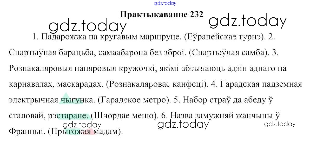 На страницах сайта gdz.today вы найдете учебный и вспомогательный материал, направленный на улучшения знаний школьной программы. ГДЗ - онлайн мир знаний Рашальнік да практыкаванняў 232 Учебнику по Белорусскому языку для 6 класса Валочка, Зелянко Национальный институт образования 2020