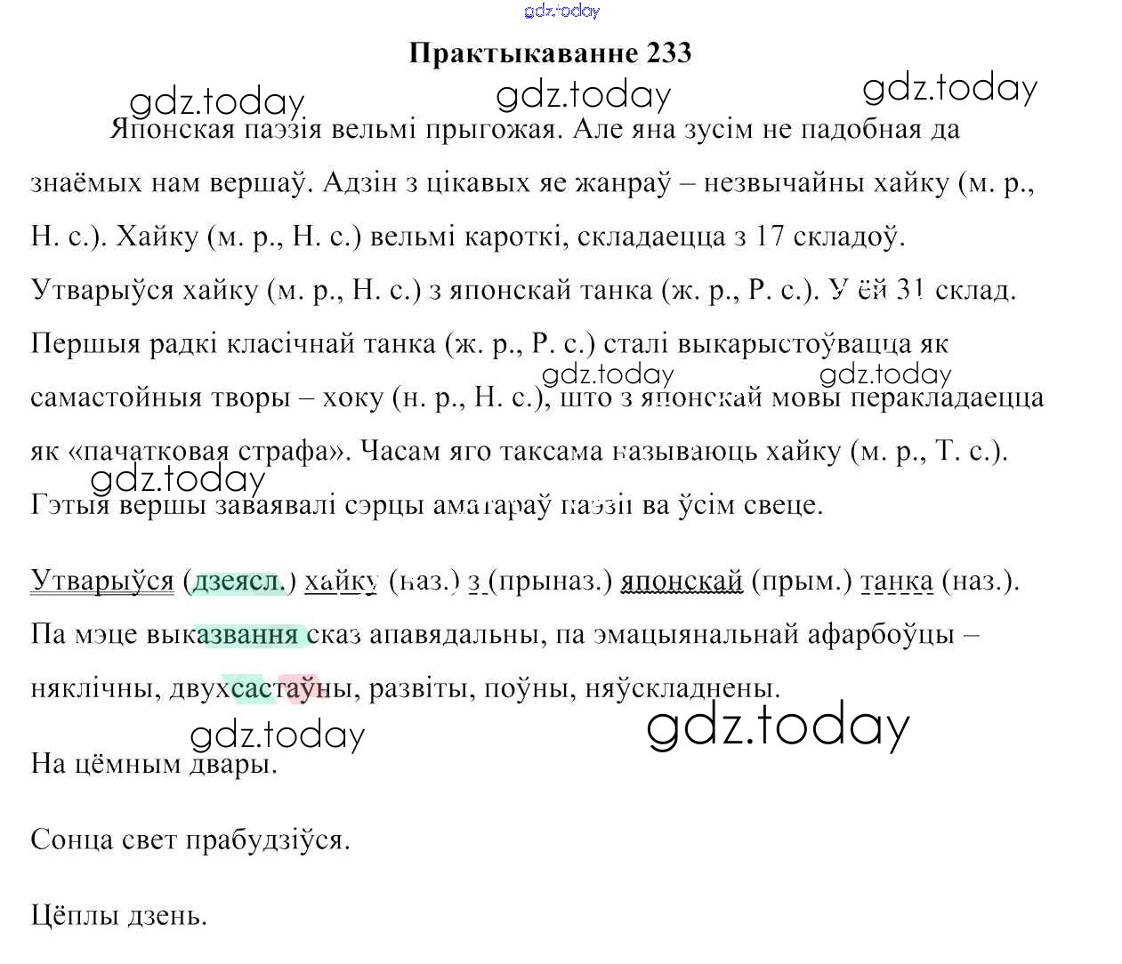 На страницах сайта gdz.today вы найдете учебный и вспомогательный материал, направленный на улучшения знаний школьной программы. ГДЗ - онлайн мир знаний Рашальнік да практыкаванняў 233 Учебнику по Белорусскому языку для 6 класса Валочка, Зелянко Национальный институт образования 2020