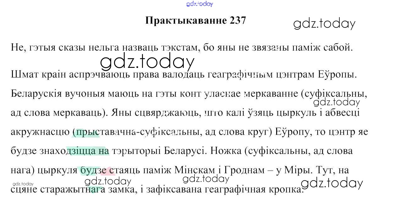 На страницах сайта gdz.today вы найдете учебный и вспомогательный материал, направленный на улучшения знаний школьной программы. ГДЗ - онлайн мир знаний Рашальнік да практыкаванняў 237 Учебнику по Белорусскому языку для 6 класса Валочка, Зелянко Национальный институт образования 2020