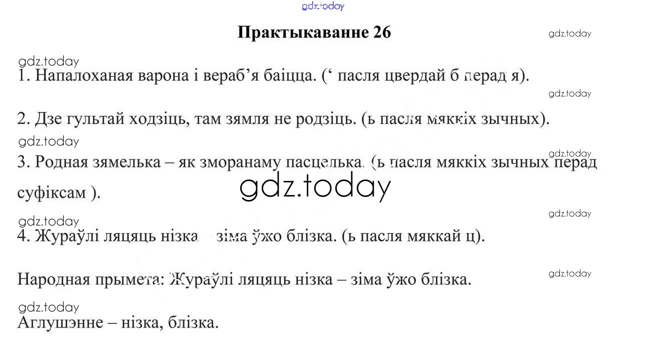 На страницах сайта gdz.today вы найдете учебный и вспомогательный материал, направленный на улучшения знаний школьной программы. ГДЗ - онлайн мир знаний Рашальнік да практыкаванняў 26 Учебнику по Белорусскому языку для 6 класса Валочка, Зелянко Национальный институт образования 2020