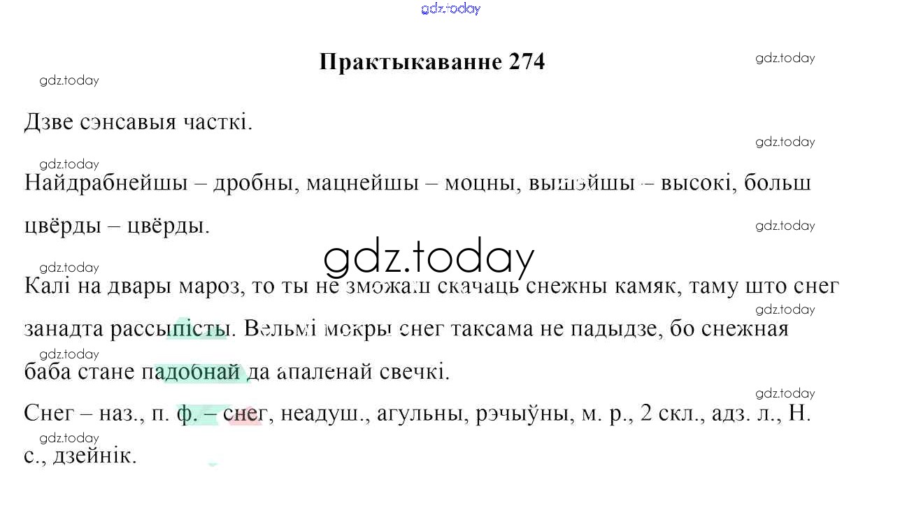 На страницах сайта gdz.today вы найдете учебный и вспомогательный материал, направленный на улучшения знаний школьной программы. ГДЗ - онлайн мир знаний Рашальнік да практыкаванняў 274 Учебнику по Белорусскому языку для 6 класса Валочка, Зелянко Национальный институт образования 2020