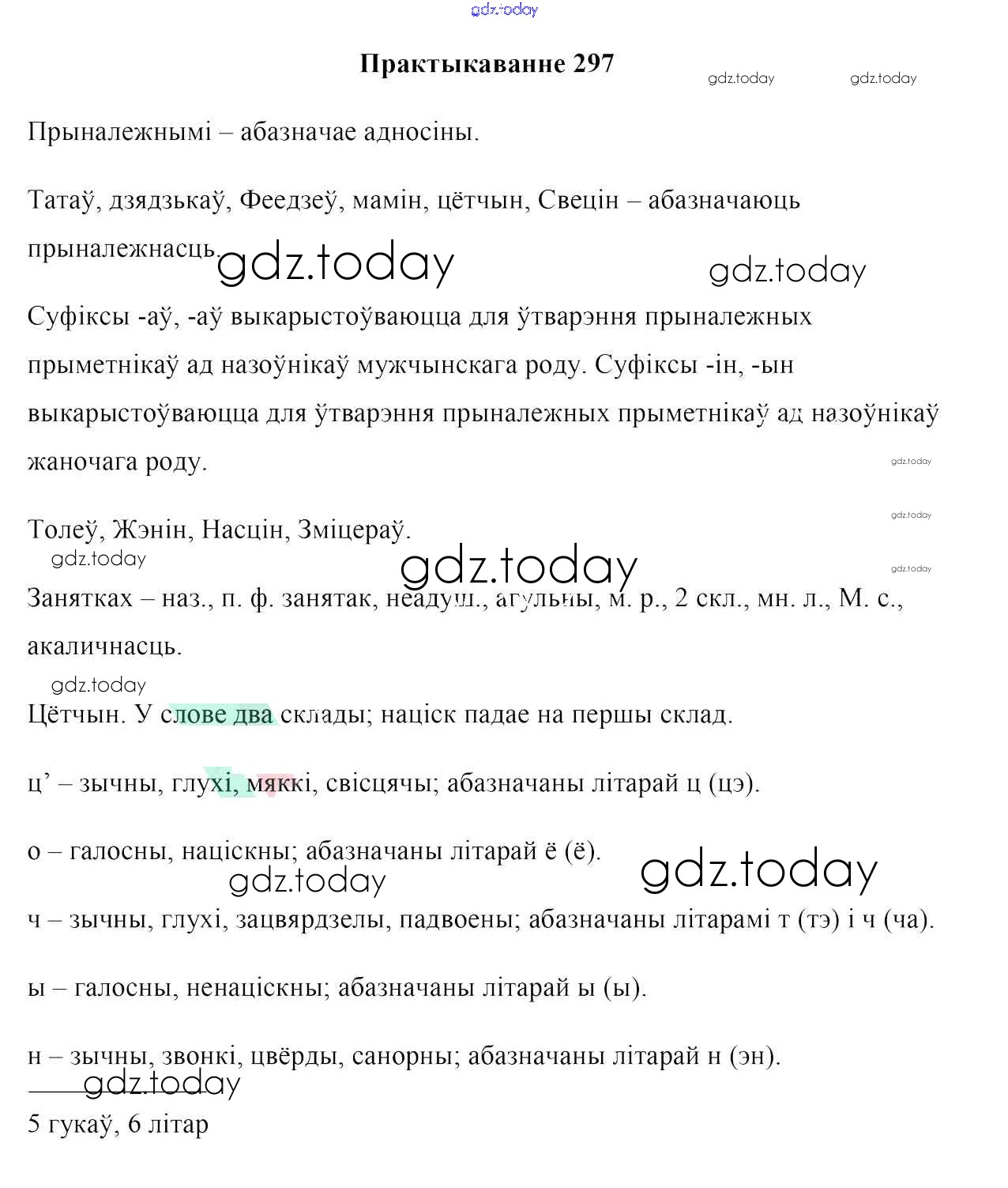 На страницах сайта gdz.today вы найдете учебный и вспомогательный материал, направленный на улучшения знаний школьной программы. ГДЗ - онлайн мир знаний Рашальнік да практыкаванняў 297 Учебнику по Белорусскому языку для 6 класса Валочка, Зелянко Национальный институт образования 2020