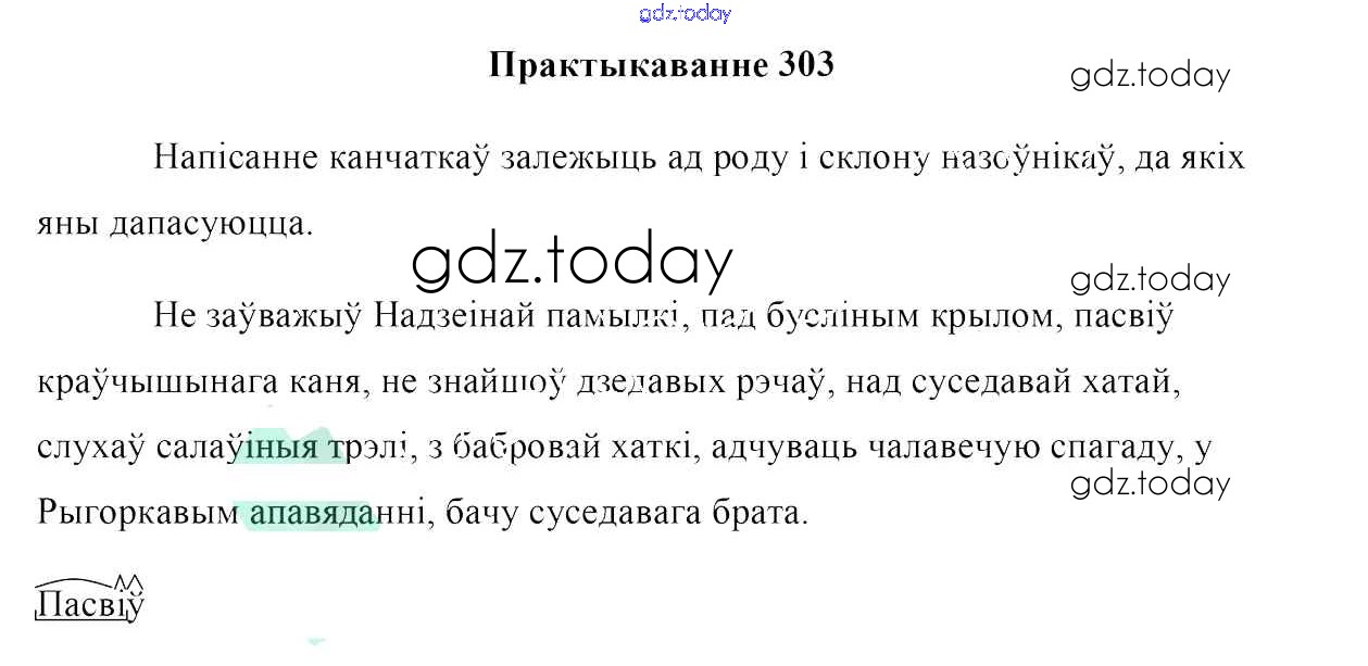 Ответы к Рашальнік да практыкаванняў 303 Учебнику по Белорусскому языку для 6 класса Валочка, Зелянко Национальный институт образования 2020