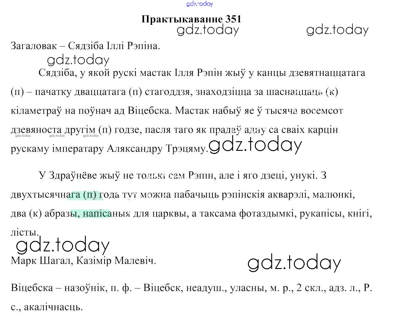 Ответы к Рашальнік да практыкаванняў 351 Учебнику по Белорусскому языку для 6 класса Валочка, Зелянко Национальный институт образования 2020