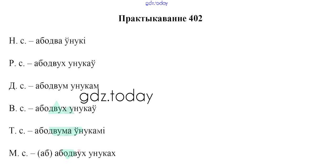 На страницах сайта gdz.today вы найдете учебный и вспомогательный материал, направленный на улучшения знаний школьной программы. ГДЗ - онлайн мир знаний Рашальнік да практыкаванняў 402 Учебнику по Белорусскому языку для 6 класса Валочка, Зелянко Национальный институт образования 2020