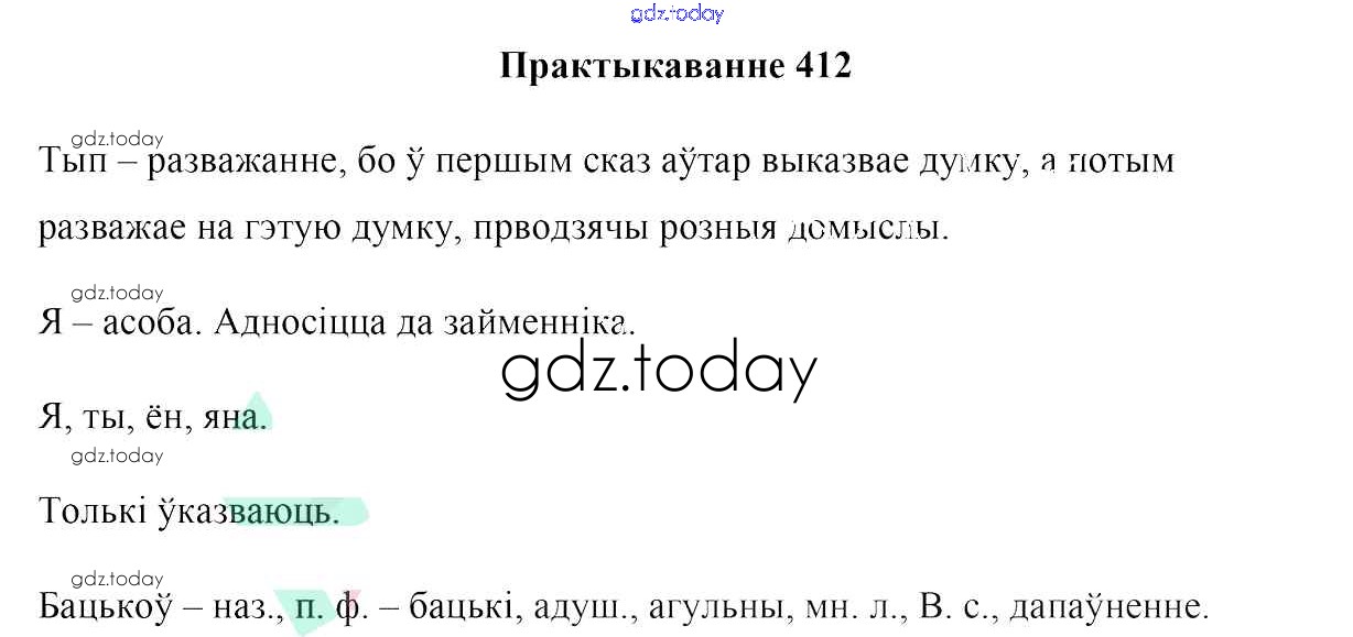 На страницах сайта gdz.today вы найдете учебный и вспомогательный материал, направленный на улучшения знаний школьной программы. ГДЗ - онлайн мир знаний Рашальнік да практыкаванняў 412 Учебнику по Белорусскому языку для 6 класса Валочка, Зелянко Национальный институт образования 2020