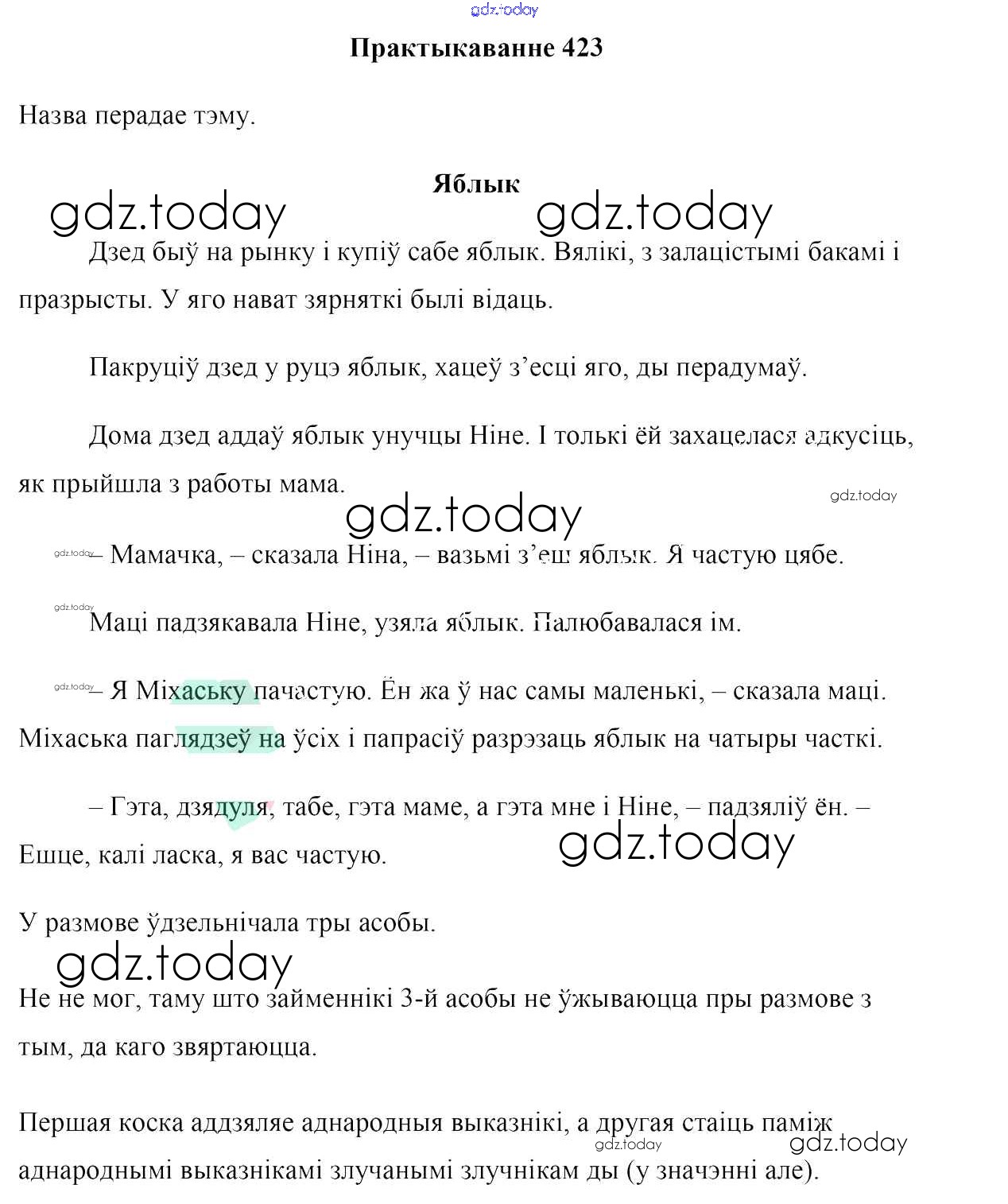 На страницах сайта gdz.today вы найдете учебный и вспомогательный материал, направленный на улучшения знаний школьной программы. ГДЗ - онлайн мир знаний Рашальнік да практыкаванняў 423 Учебнику по Белорусскому языку для 6 класса Валочка, Зелянко Национальный институт образования 2020