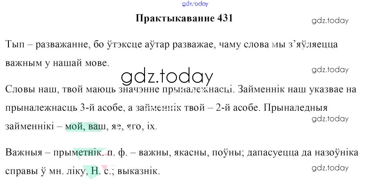 На страницах сайта gdz.today вы найдете учебный и вспомогательный материал, направленный на улучшения знаний школьной программы. ГДЗ - онлайн мир знаний Рашальнік да практыкаванняў 431 Учебнику по Белорусскому языку для 6 класса Валочка, Зелянко Национальный институт образования 2020