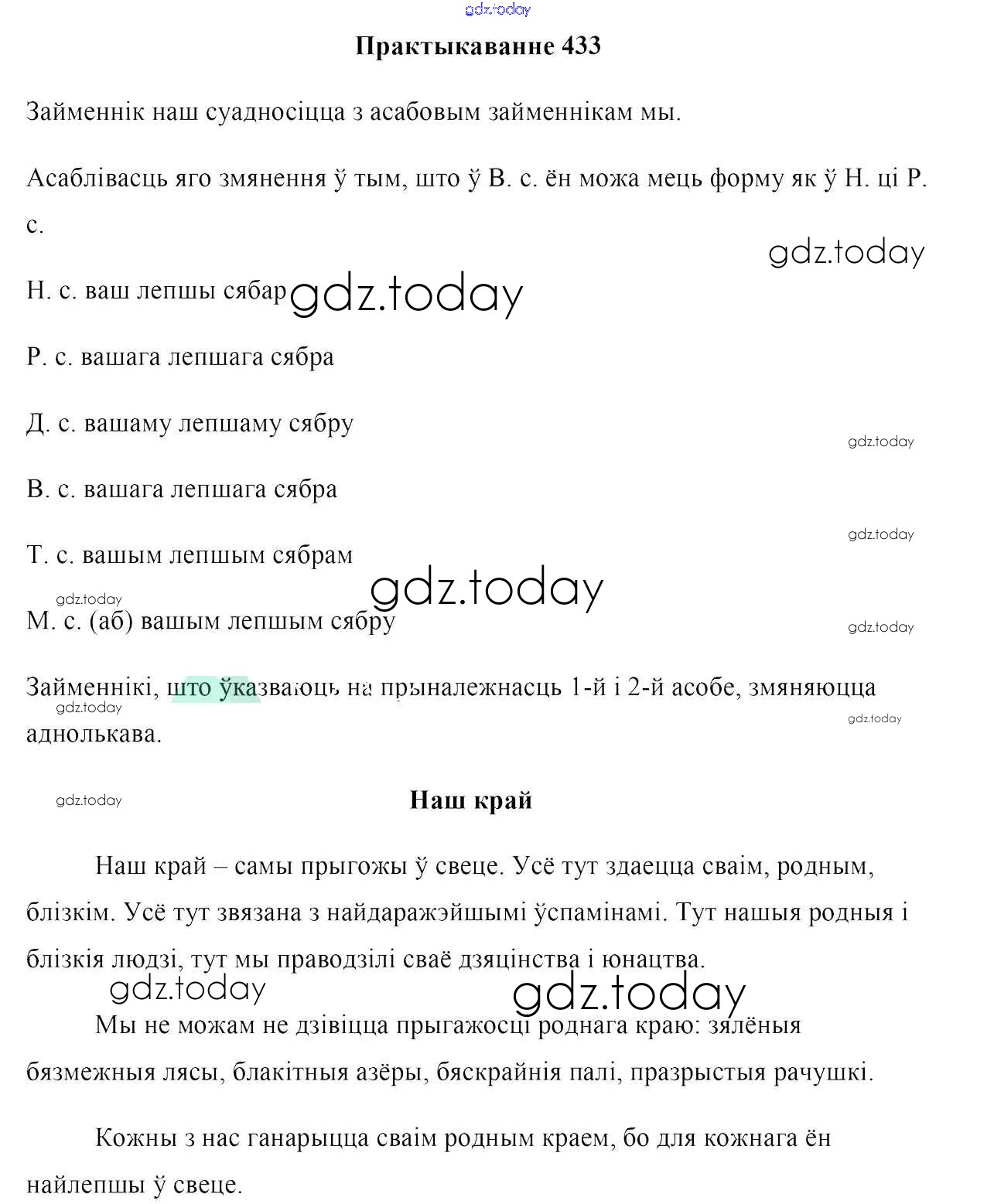 На страницах сайта gdz.today вы найдете учебный и вспомогательный материал, направленный на улучшения знаний школьной программы. ГДЗ - онлайн мир знаний Рашальнік да практыкаванняў 433 Учебнику по Белорусскому языку для 6 класса Валочка, Зелянко Национальный институт образования 2020