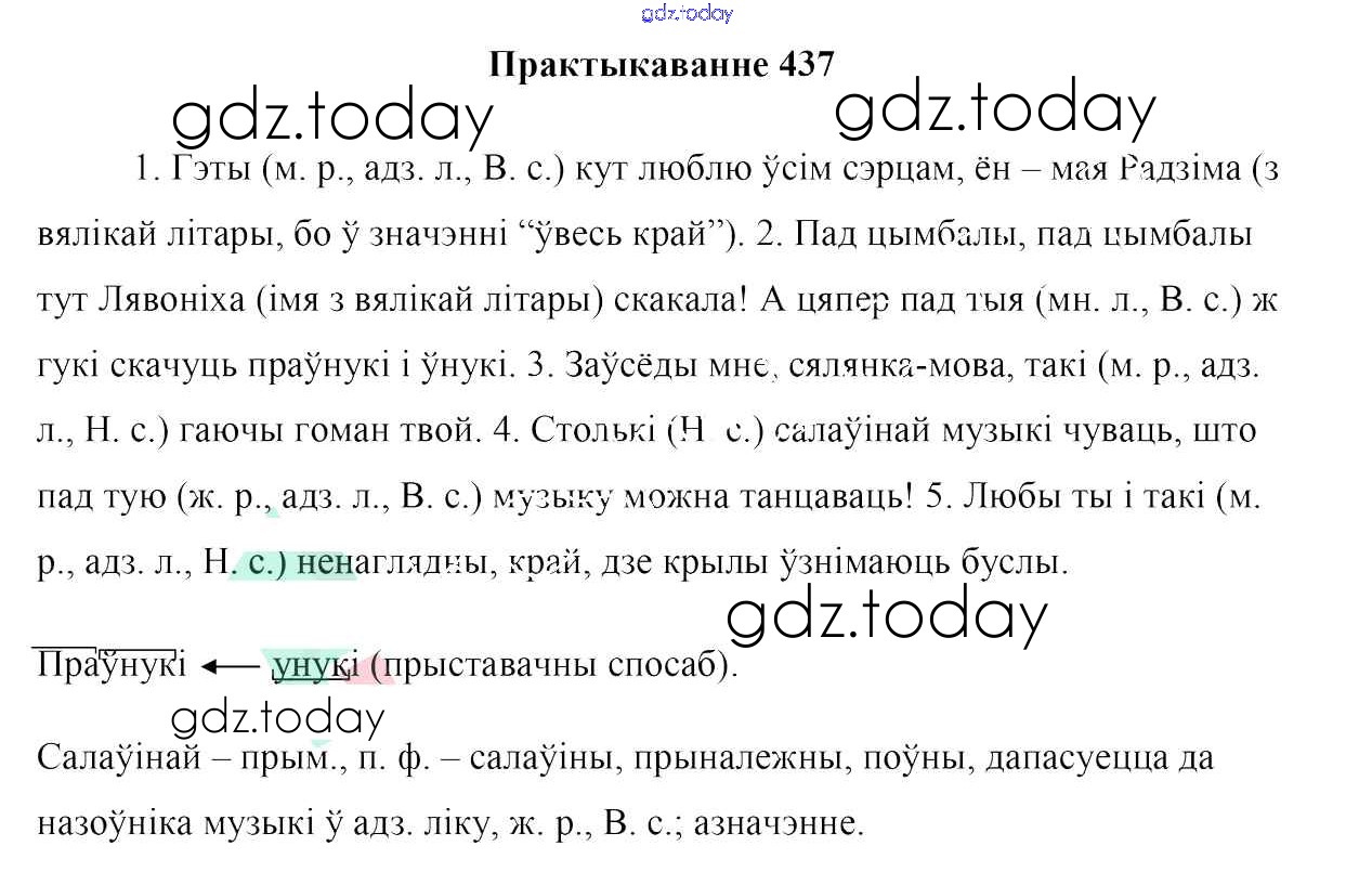 Ответы к Рашальнік да практыкаванняў 437 Учебнику по Белорусскому языку для 6 класса Валочка, Зелянко Национальный институт образования 2020
