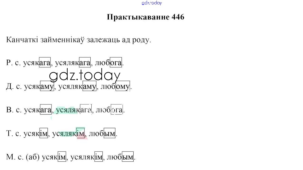 На страницах сайта gdz.today вы найдете учебный и вспомогательный материал, направленный на улучшения знаний школьной программы. ГДЗ - онлайн мир знаний Рашальнік да практыкаванняў 446 Учебнику по Белорусскому языку для 6 класса Валочка, Зелянко Национальный институт образования 2020