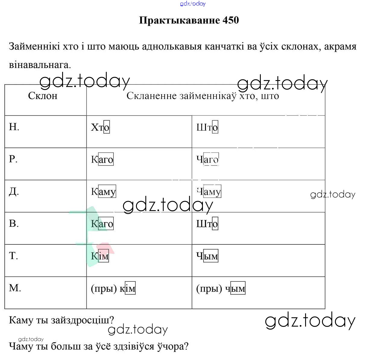 На страницах сайта gdz.today вы найдете учебный и вспомогательный материал, направленный на улучшения знаний школьной программы. ГДЗ - онлайн мир знаний Рашальнік да практыкаванняў 450 Учебнику по Белорусскому языку для 6 класса Валочка, Зелянко Национальный институт образования 2020