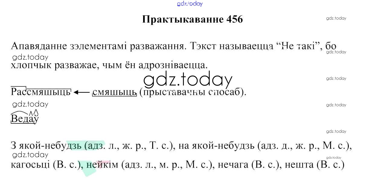 На страницах сайта gdz.today вы найдете учебный и вспомогательный материал, направленный на улучшения знаний школьной программы. ГДЗ - онлайн мир знаний Рашальнік да практыкаванняў 456 Учебнику по Белорусскому языку для 6 класса Валочка, Зелянко Национальный институт образования 2020