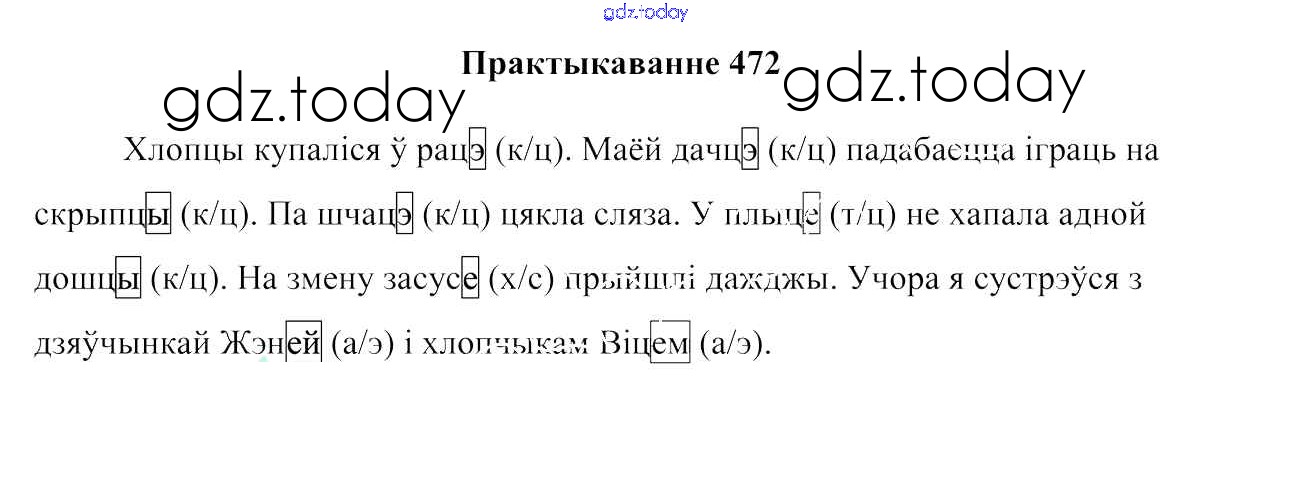 На страницах сайта gdz.today вы найдете учебный и вспомогательный материал, направленный на улучшения знаний школьной программы. ГДЗ - онлайн мир знаний Рашальнік да практыкаванняў 472 Учебнику по Белорусскому языку для 6 класса Валочка, Зелянко Национальный институт образования 2020