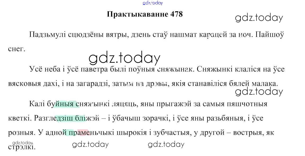 Ответы к Рашальнік да практыкаванняў 478 Учебнику по Белорусскому языку для 6 класса Валочка, Зелянко Национальный институт образования 2020