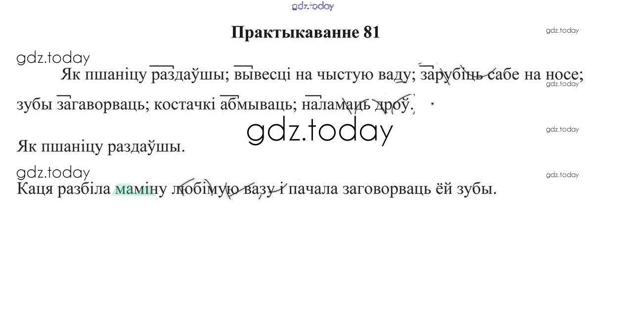 На страницах сайта gdz.today вы найдете учебный и вспомогательный материал, направленный на улучшения знаний школьной программы. ГДЗ - онлайн мир знаний Рашальнік да практыкаванняў 81 Учебнику по Белорусскому языку для 6 класса Валочка, Зелянко Национальный институт образования 2020