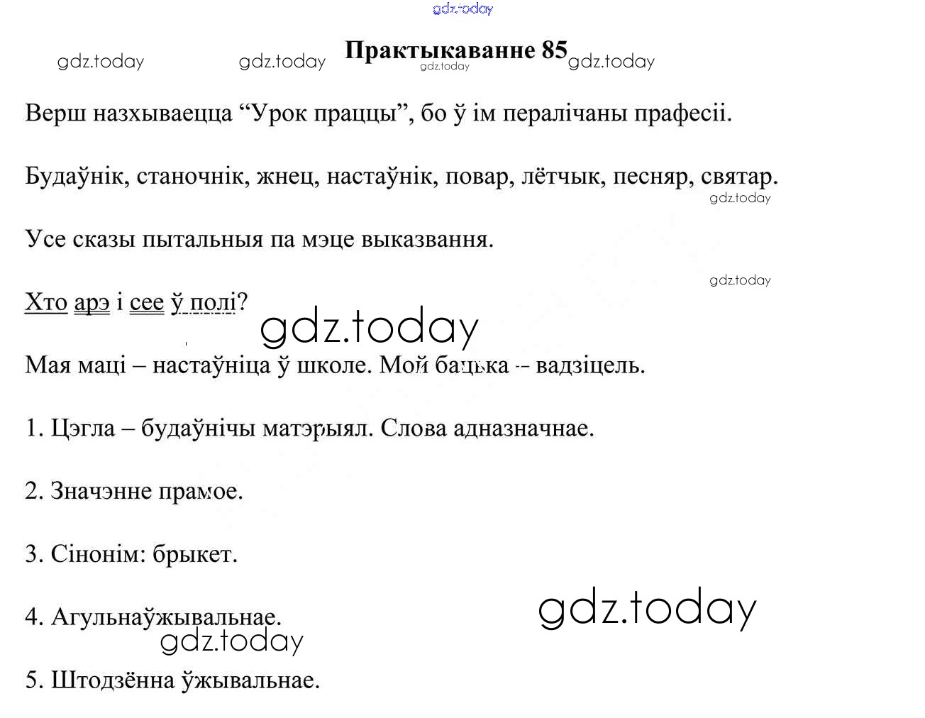 На страницах сайта gdz.today вы найдете учебный и вспомогательный материал, направленный на улучшения знаний школьной программы. ГДЗ - онлайн мир знаний Рашальнік да практыкаванняў 85 Учебнику по Белорусскому языку для 6 класса Валочка, Зелянко Национальный институт образования 2020