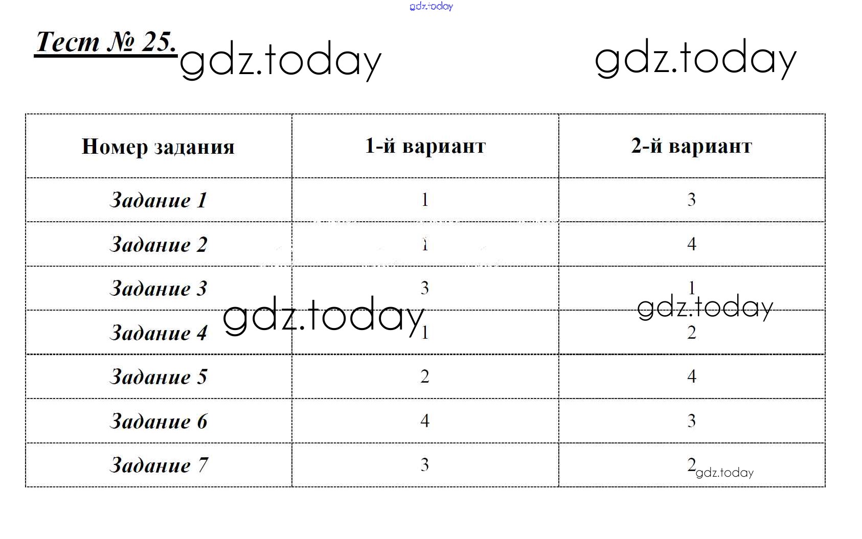 Ответы к Решение к тестам Тест 25. Оплодотворение. Образование плодов и семян Контрольно-измерительным материалам (КИМ) по Биологии для 6 класса Богданов ВАКО 2017