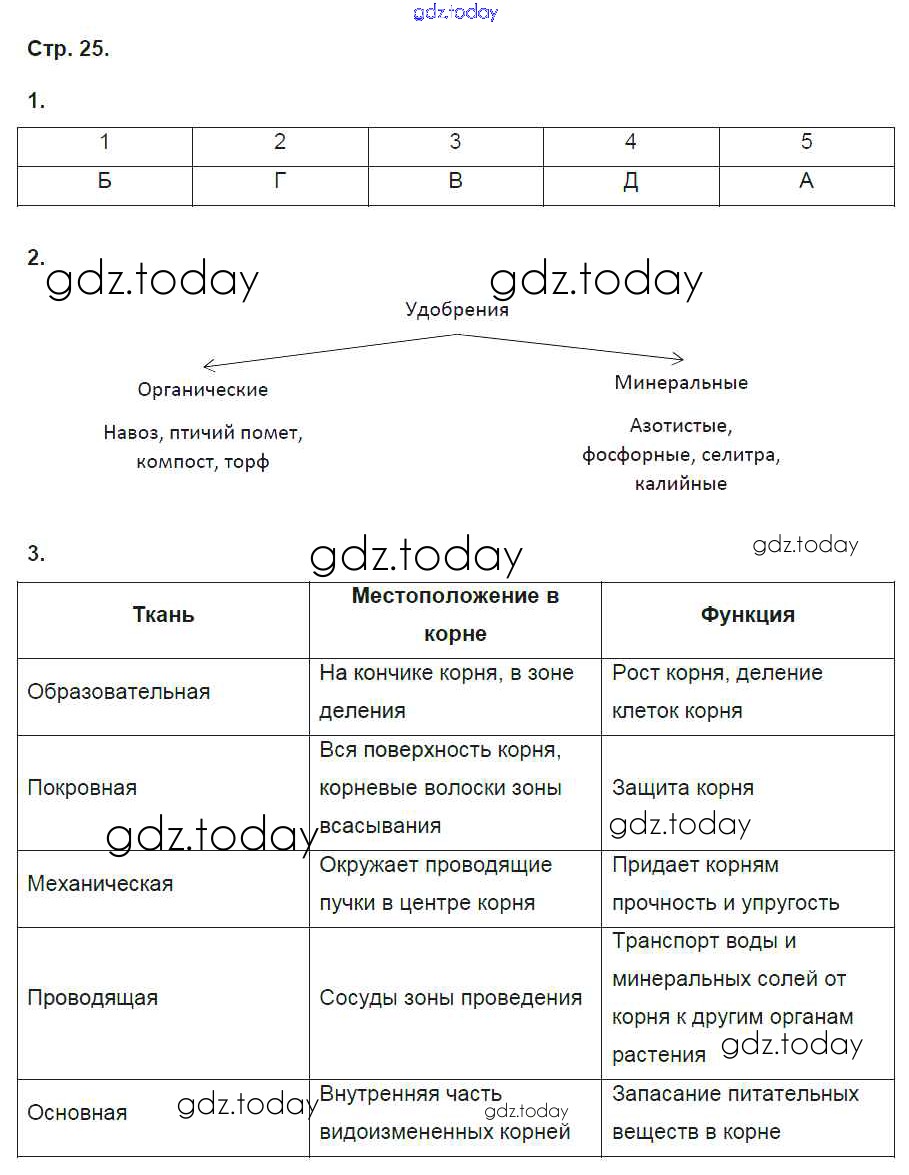 Ответы к Страницы (решение) 25 Рабочей тетради по Биологии для 6 класса Исаева, Романова Русское слово Инновационная школа 2017