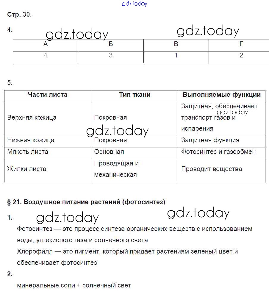 Ответы к Страницы (решение) 30 Рабочей тетради по Биологии для 6 класса Исаева, Романова Русское слово Инновационная школа 2017
