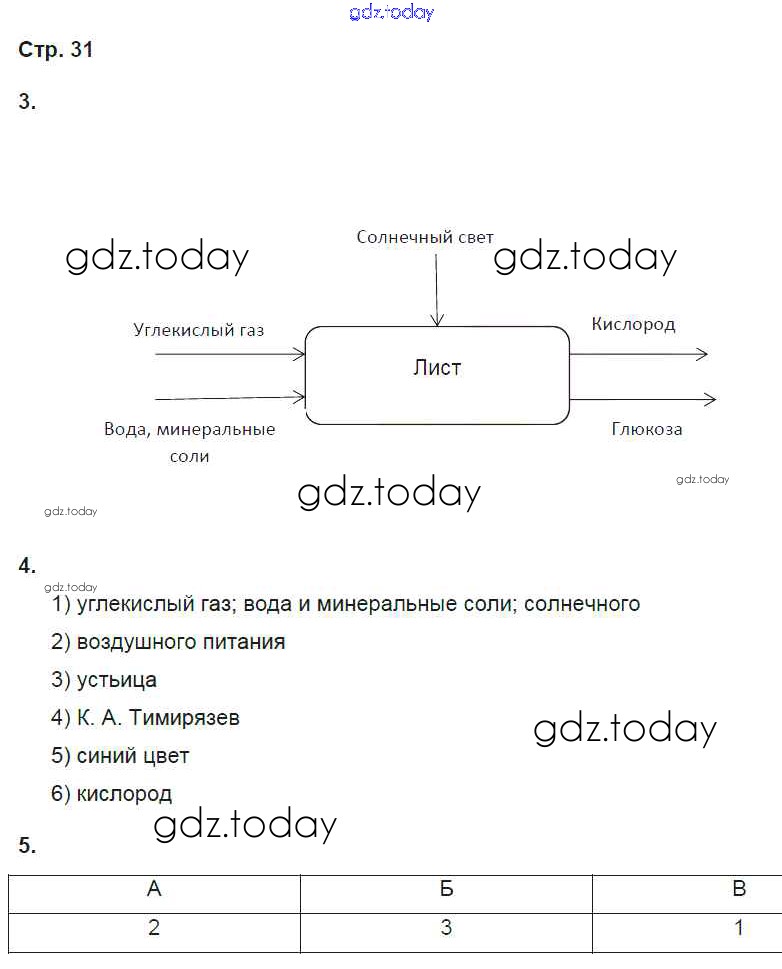 Ответы к Страницы (решение) 31 Рабочей тетради по Биологии для 6 класса Исаева, Романова Русское слово Инновационная школа 2017