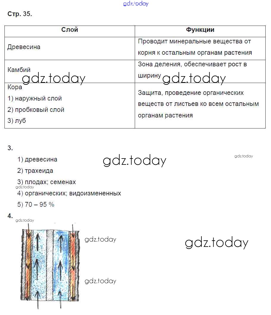 Ответы к Страницы (решение) 35 Рабочей тетради по Биологии для 6 класса Исаева, Романова Русское слово Инновационная школа 2017