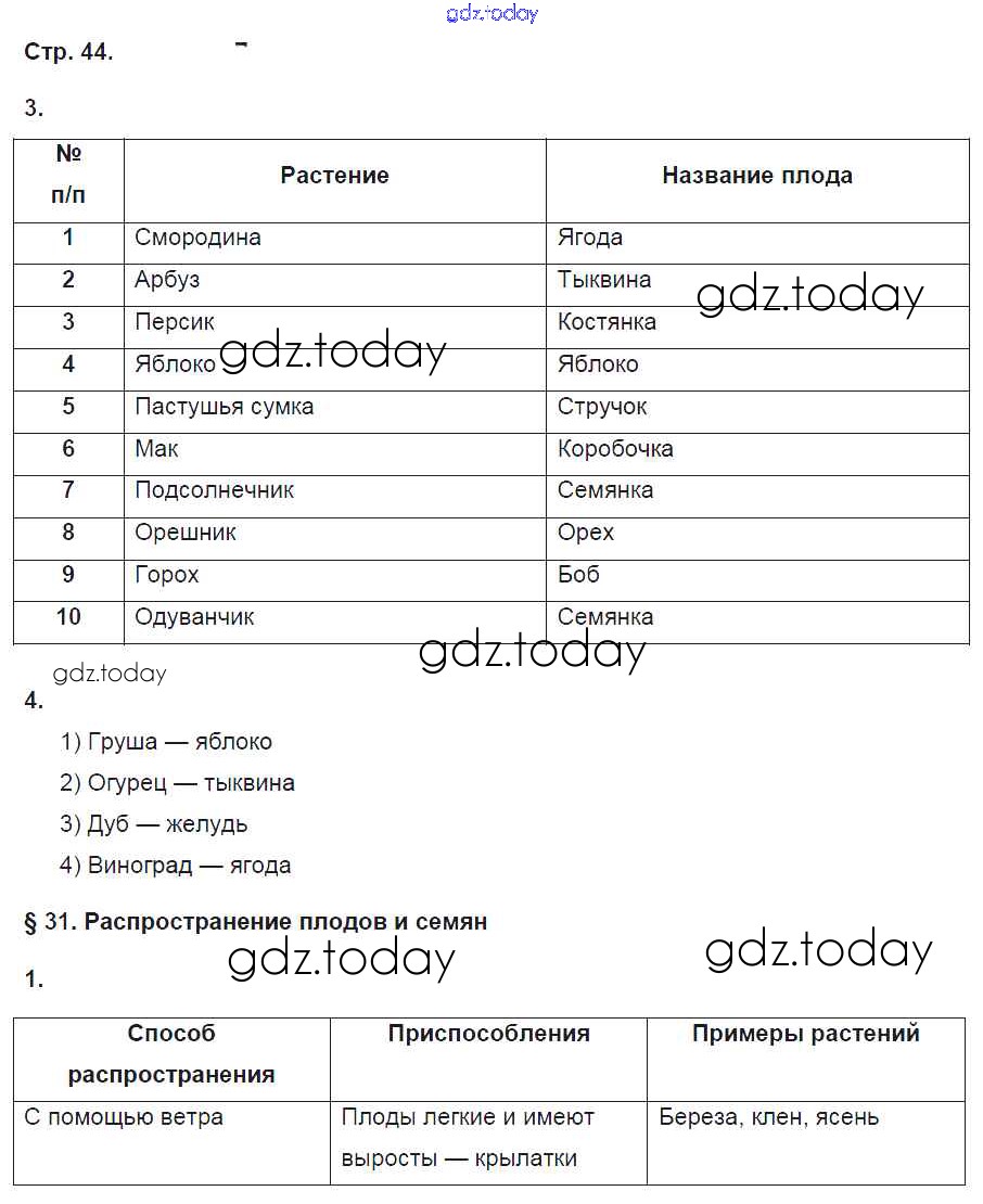 Ответы к Страницы (решение) 44 Рабочей тетради по Биологии для 6 класса Исаева, Романова Русское слово Инновационная школа 2017