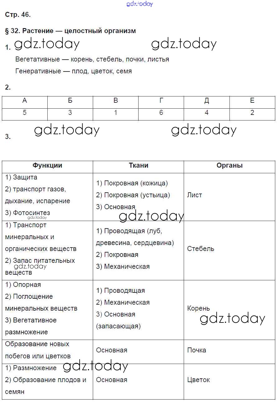 На страницах сайта gdz.today вы найдете учебный и вспомогательный материал, направленный на улучшения знаний школьной программы. ГДЗ - онлайн мир знаний Страницы (решение) 46 Рабочей тетради по Биологии для 6 класса Исаева, Романова Русское слово Инновационная школа 2017