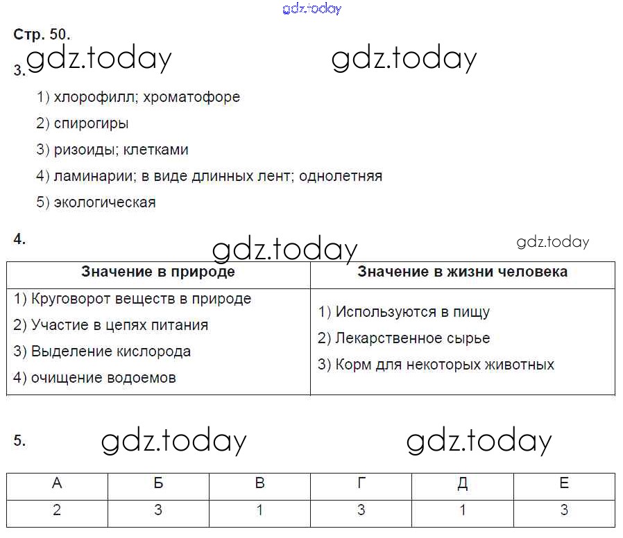 Ответы к Страницы (решение) 50 Рабочей тетради по Биологии для 6 класса Исаева, Романова Русское слово Инновационная школа 2017