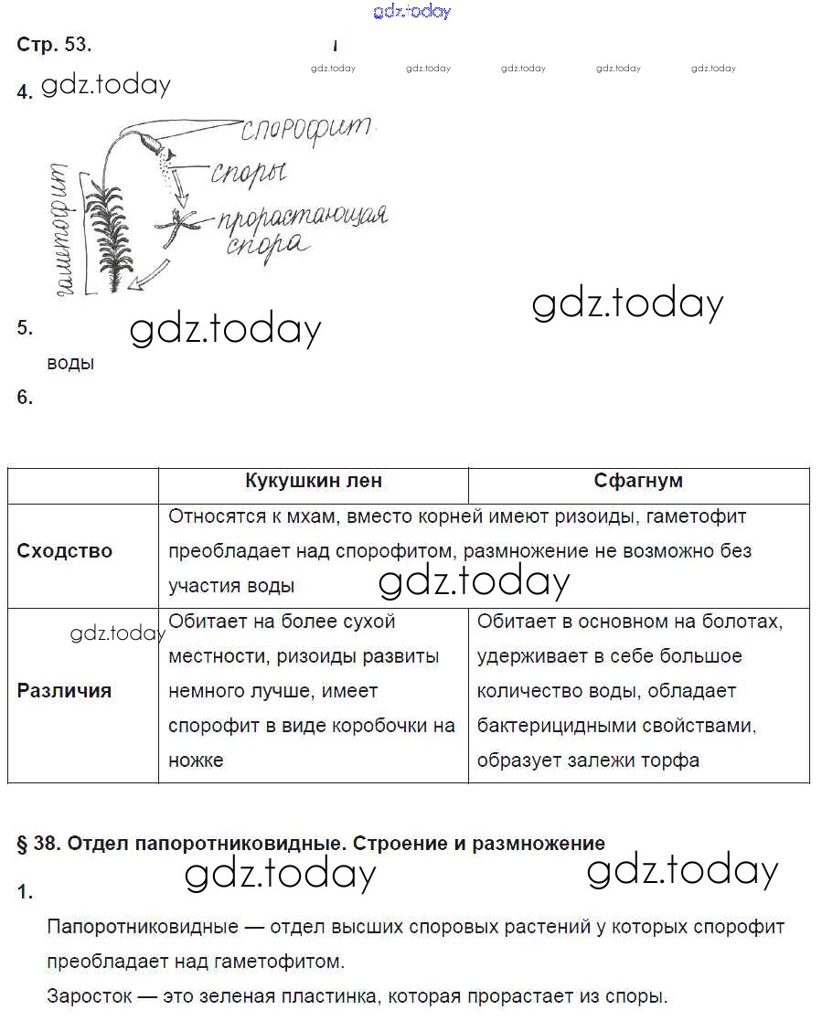 Ответы к Страницы (решение) 53 Рабочей тетради по Биологии для 6 класса Исаева, Романова Русское слово Инновационная школа 2017
