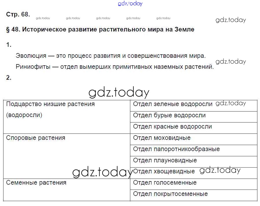 На страницах сайта gdz.today вы найдете учебный и вспомогательный материал, направленный на улучшения знаний школьной программы. ГДЗ - онлайн мир знаний Страницы (решение) 68 Рабочей тетради по Биологии для 6 класса Исаева, Романова Русское слово Инновационная школа 2017