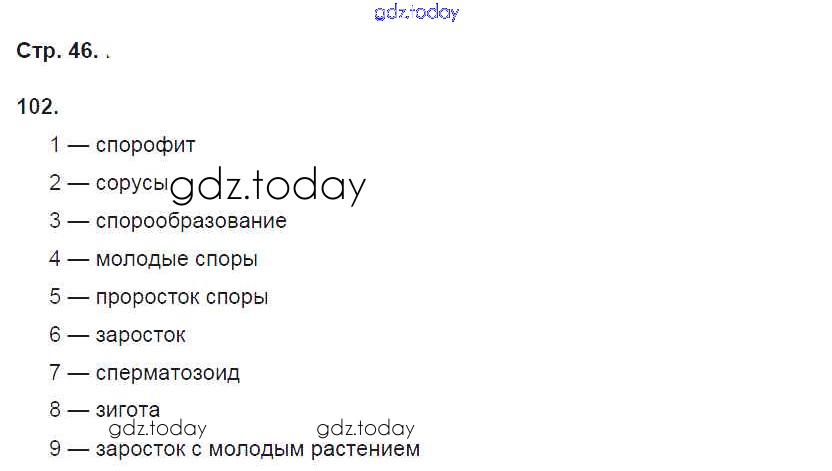 На страницах сайта gdz.today вы найдете учебный и вспомогательный материал, направленный на улучшения знаний школьной программы. ГДЗ - онлайн мир знаний Упражнения (решение) 102 Рабочей тетради по Биологии для 6 класса Пасечник Дрофа УМК 2017