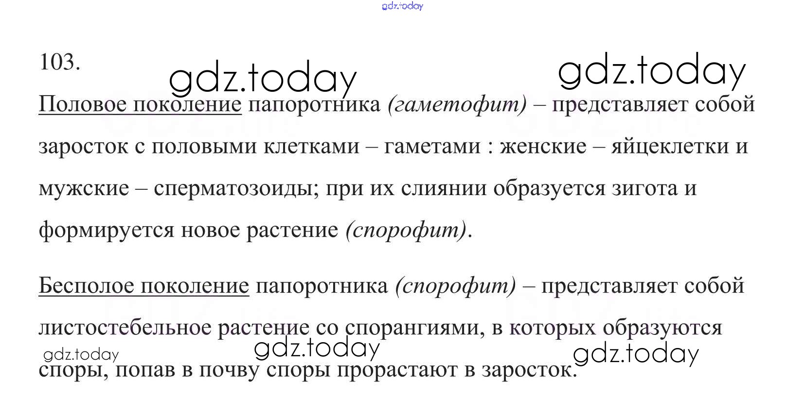 На страницах сайта gdz.today вы найдете учебный и вспомогательный материал, направленный на улучшения знаний школьной программы. ГДЗ - онлайн мир знаний Упражнения (решение) 103 Рабочей тетради по Биологии для 6 класса Пасечник Дрофа УМК 2017