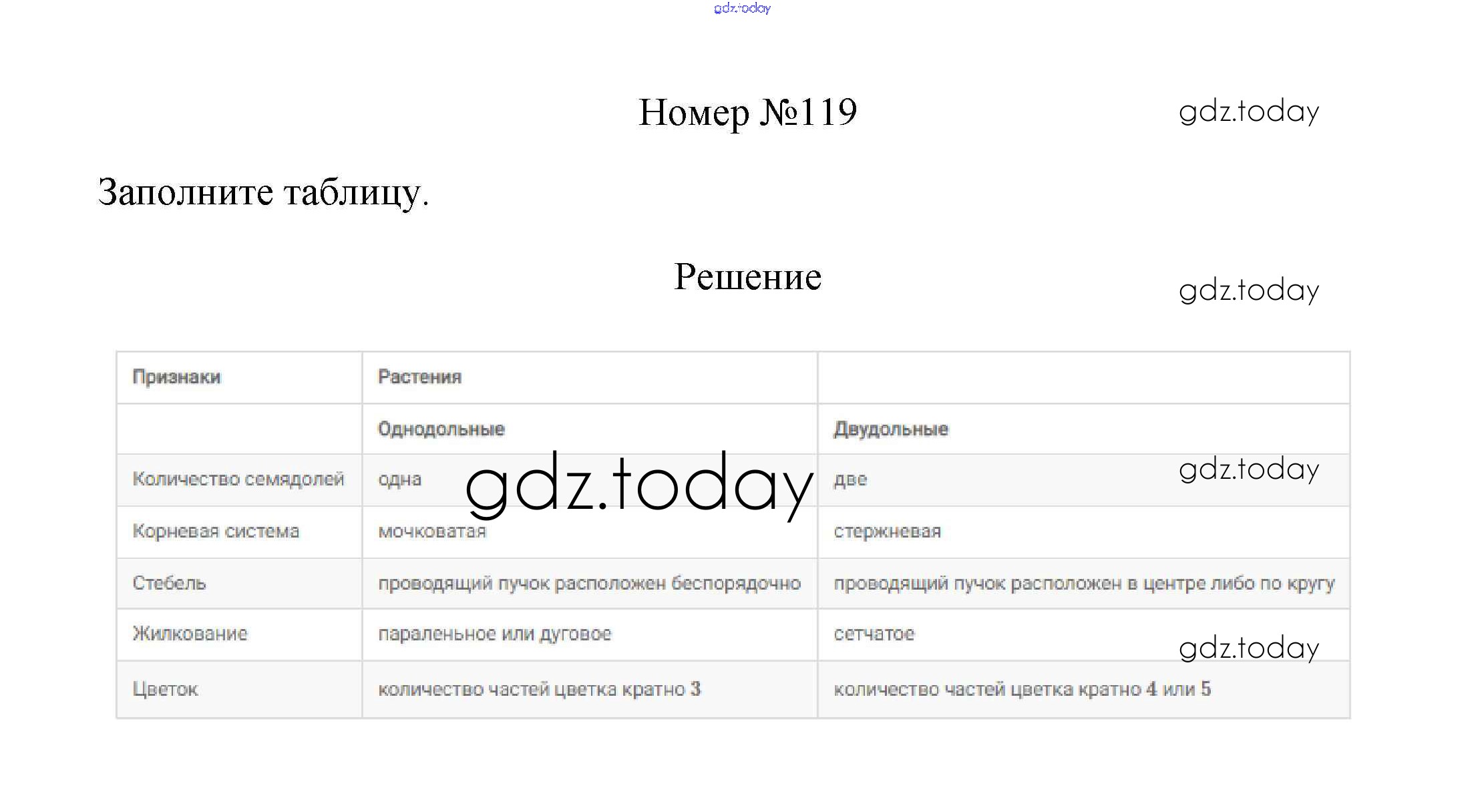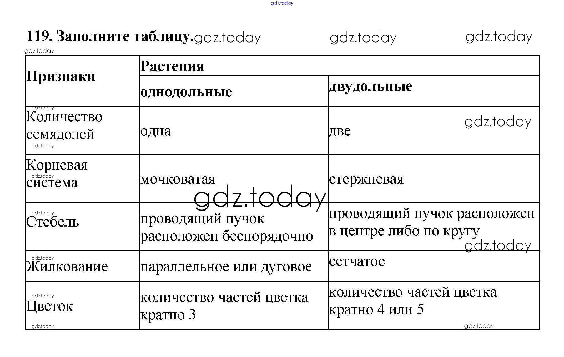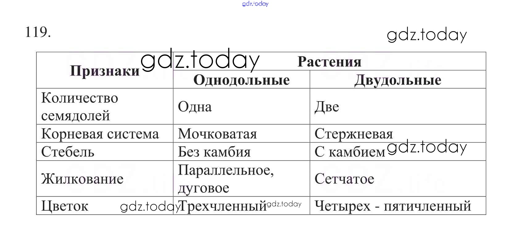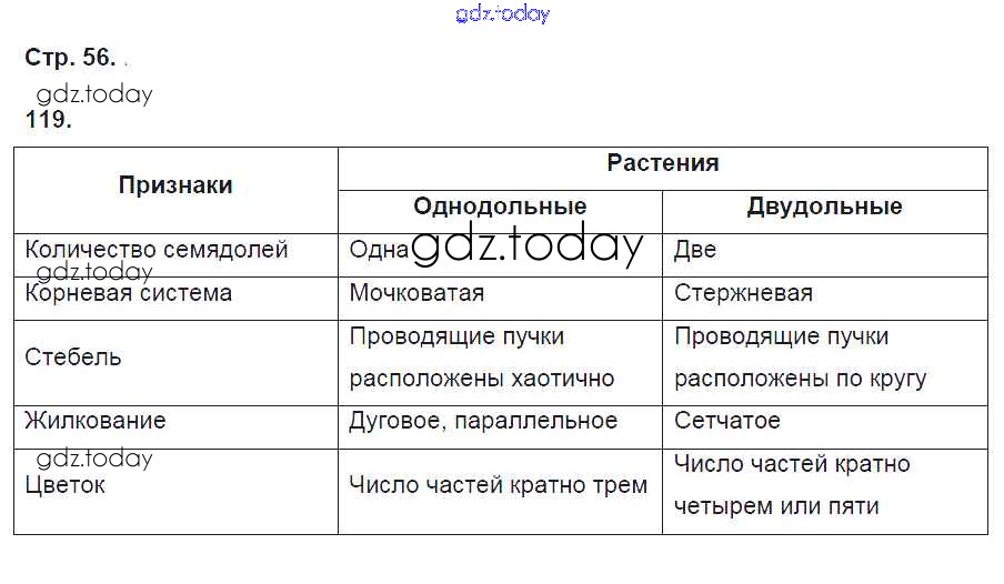 На страницах сайта gdz.today вы найдете учебный и вспомогательный материал, направленный на улучшения знаний школьной программы. ГДЗ - онлайн мир знаний Упражнения (решение) 119 Рабочей тетради по Биологии для 6 класса Пасечник Дрофа УМК 2017