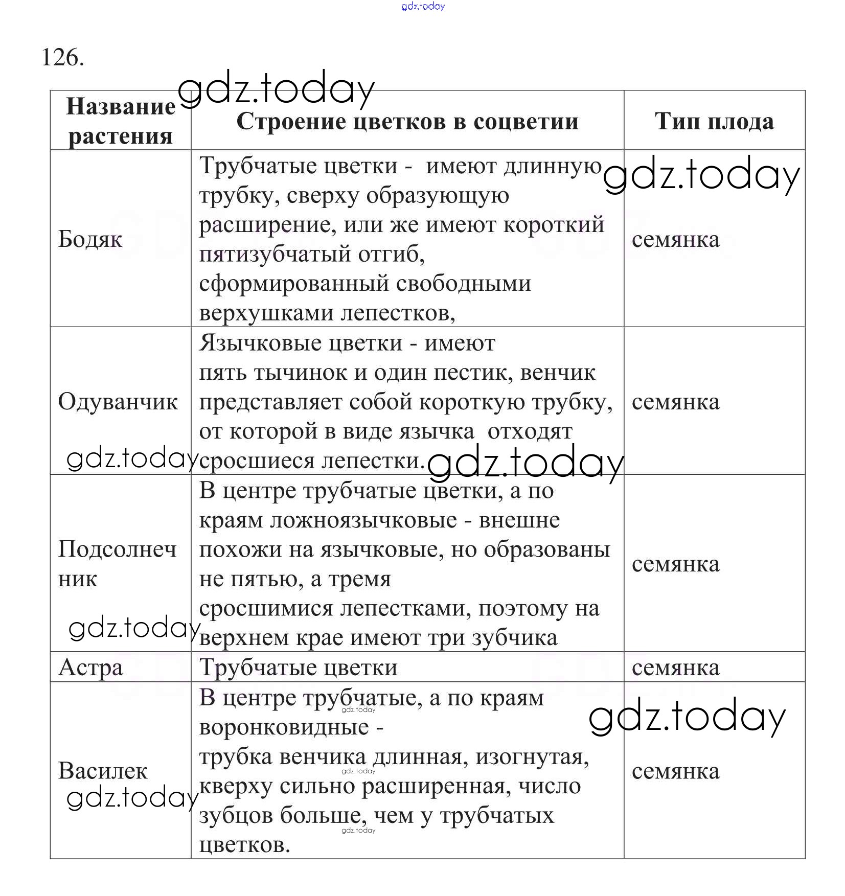 На страницах сайта gdz.today вы найдете учебный и вспомогательный материал, направленный на улучшения знаний школьной программы. ГДЗ - онлайн мир знаний Упражнения (решение) 126 Рабочей тетради по Биологии для 6 класса Пасечник Дрофа УМК 2017
