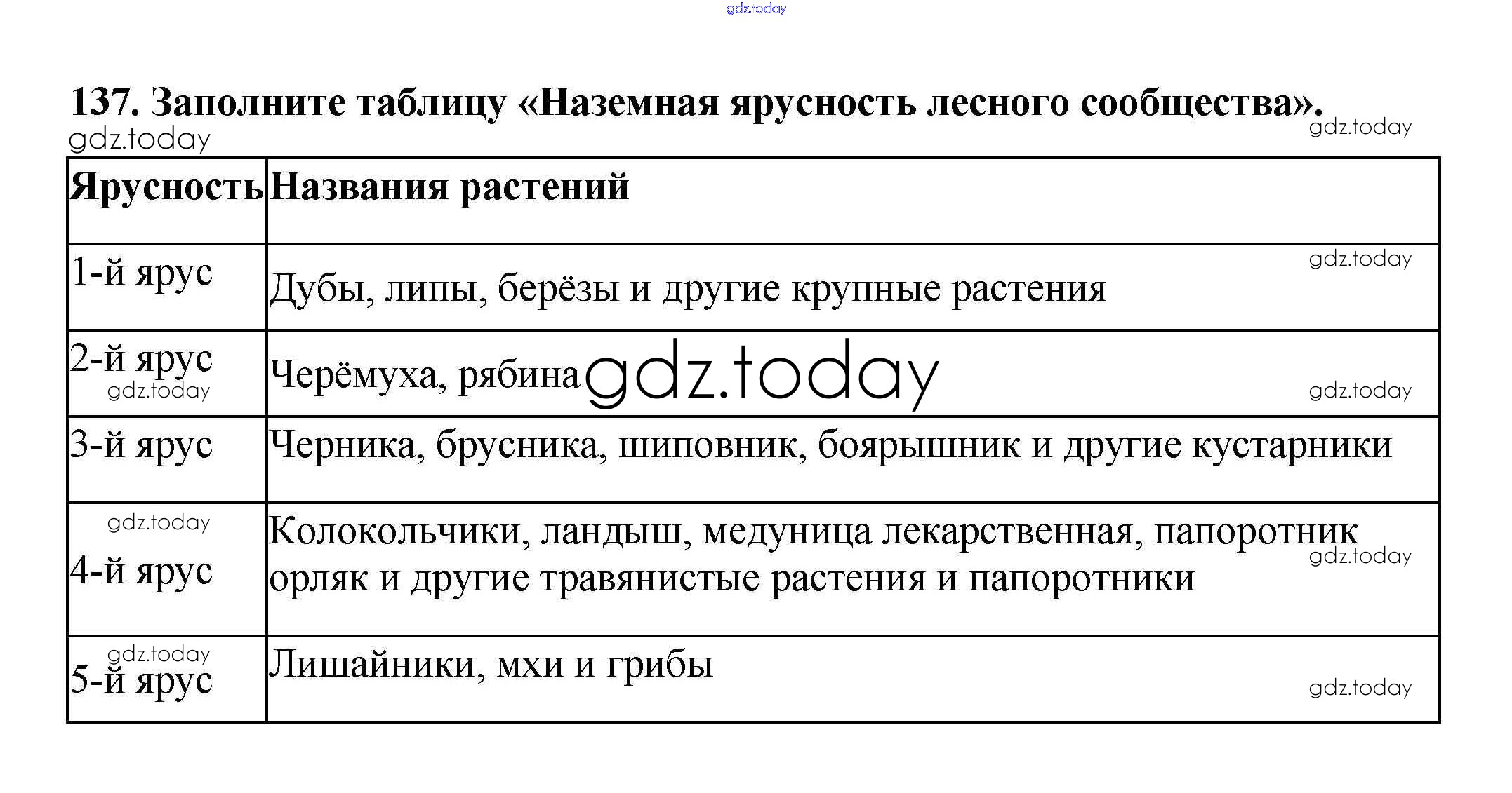 На страницах сайта gdz.today вы найдете учебный и вспомогательный материал, направленный на улучшения знаний школьной программы. ГДЗ - онлайн мир знаний Упражнения (решение) 137 Рабочей тетради по Биологии для 6 класса Пасечник Дрофа УМК 2017