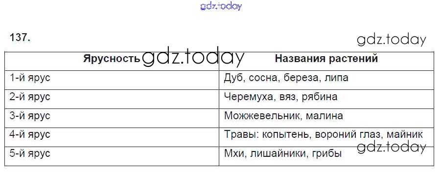 Ответы к Упражнения (решение) 137 Рабочей тетради по Биологии для 6 класса Пасечник Дрофа УМК 2017