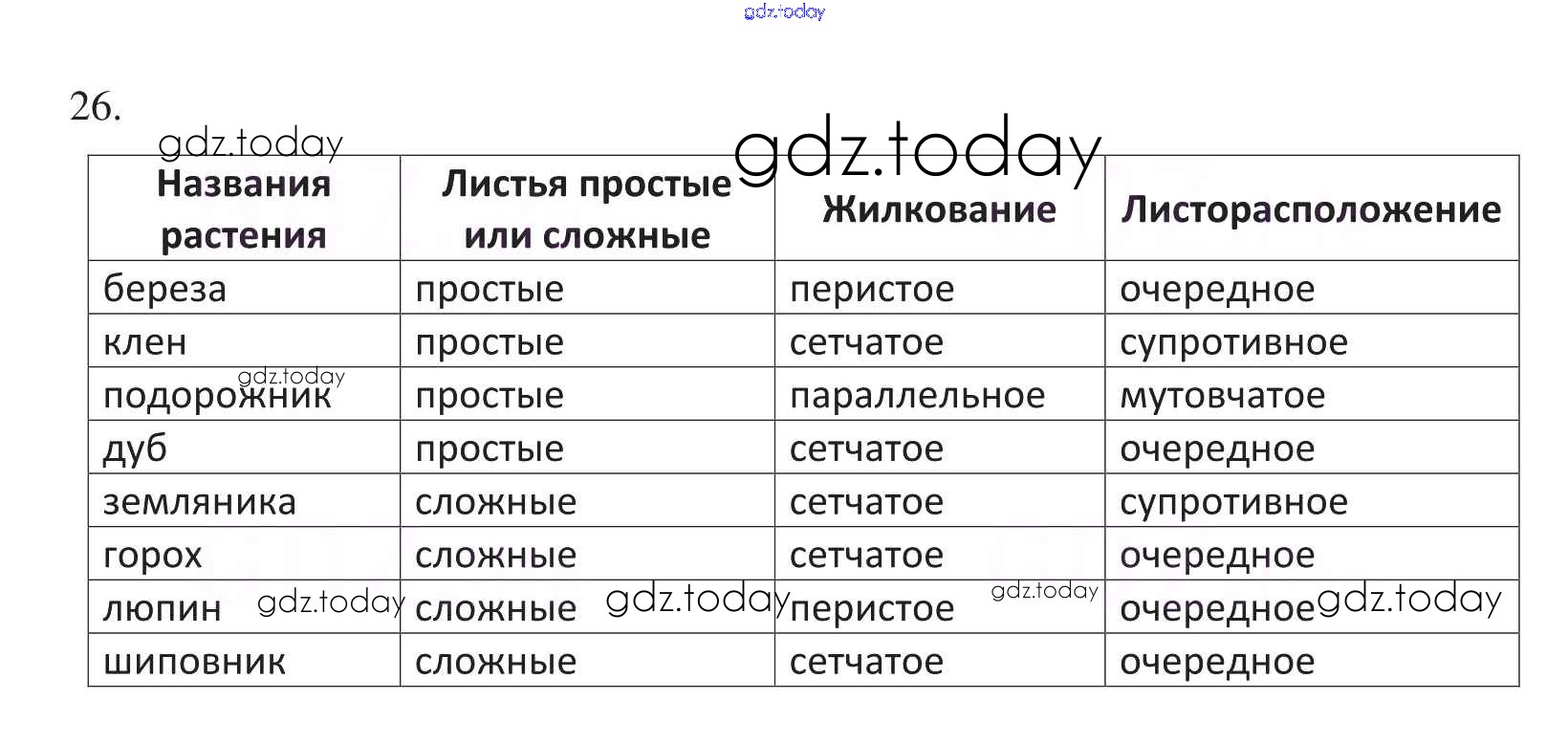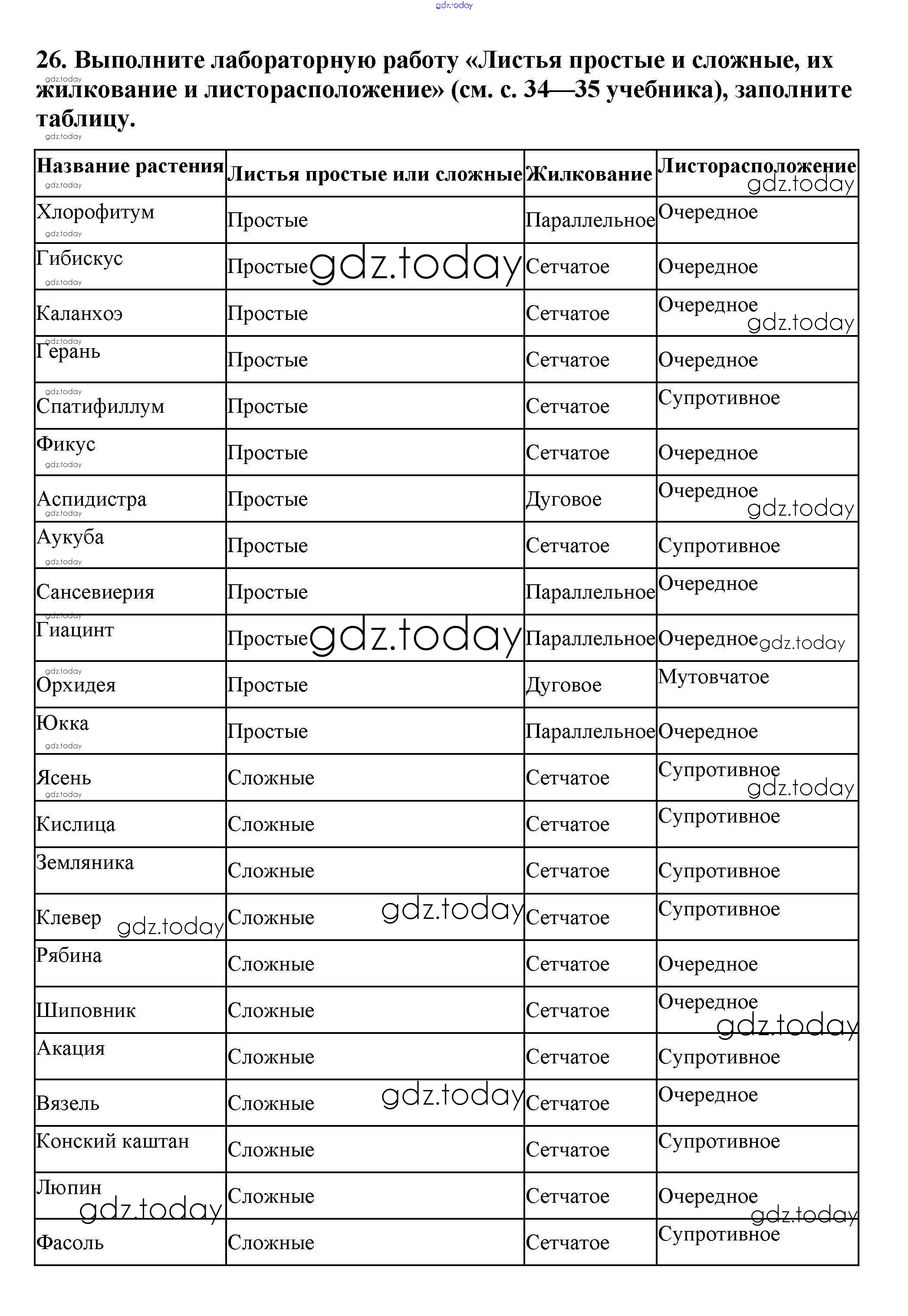 На страницах сайта gdz.today вы найдете учебный и вспомогательный материал, направленный на улучшения знаний школьной программы. ГДЗ - онлайн мир знаний Упражнения (решение) 26 Рабочей тетради по Биологии для 6 класса Пасечник Дрофа УМК 2017