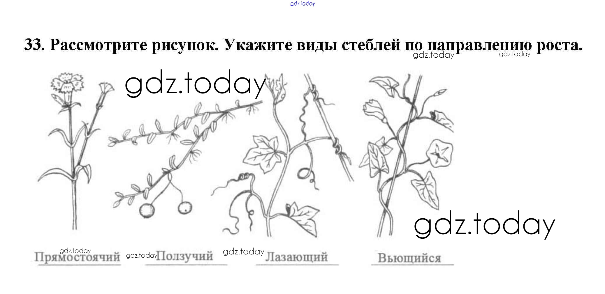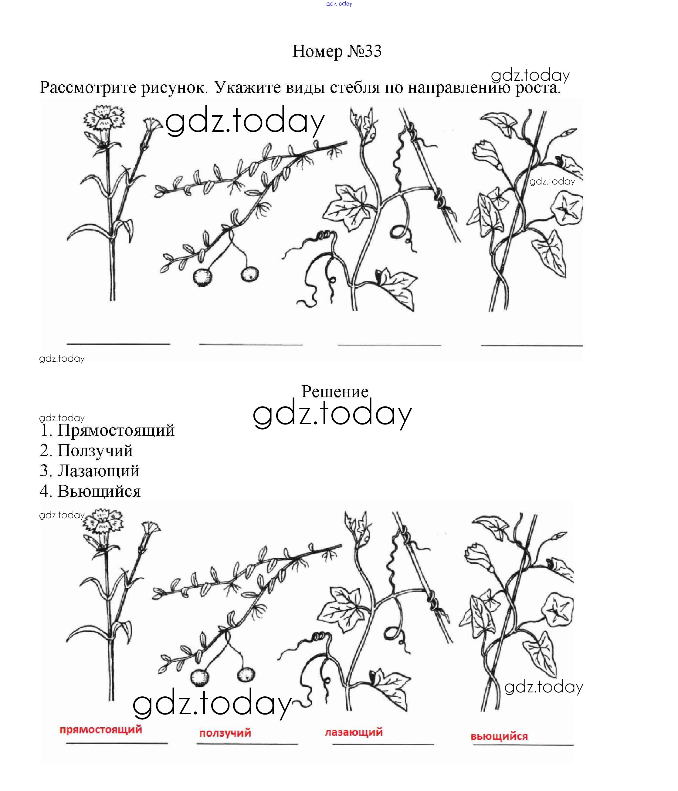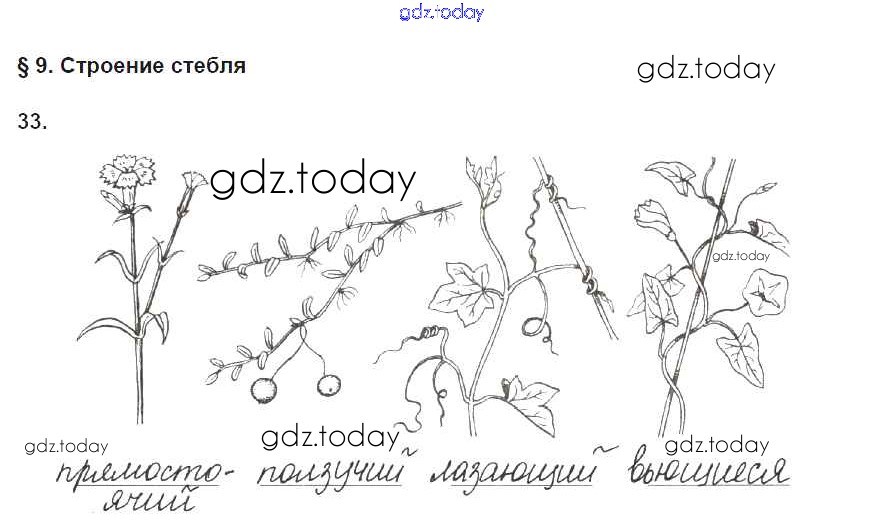 На страницах сайта gdz.today вы найдете учебный и вспомогательный материал, направленный на улучшения знаний школьной программы. ГДЗ - онлайн мир знаний Упражнения (решение) 33 Рабочей тетради по Биологии для 6 класса Пасечник Дрофа УМК 2017