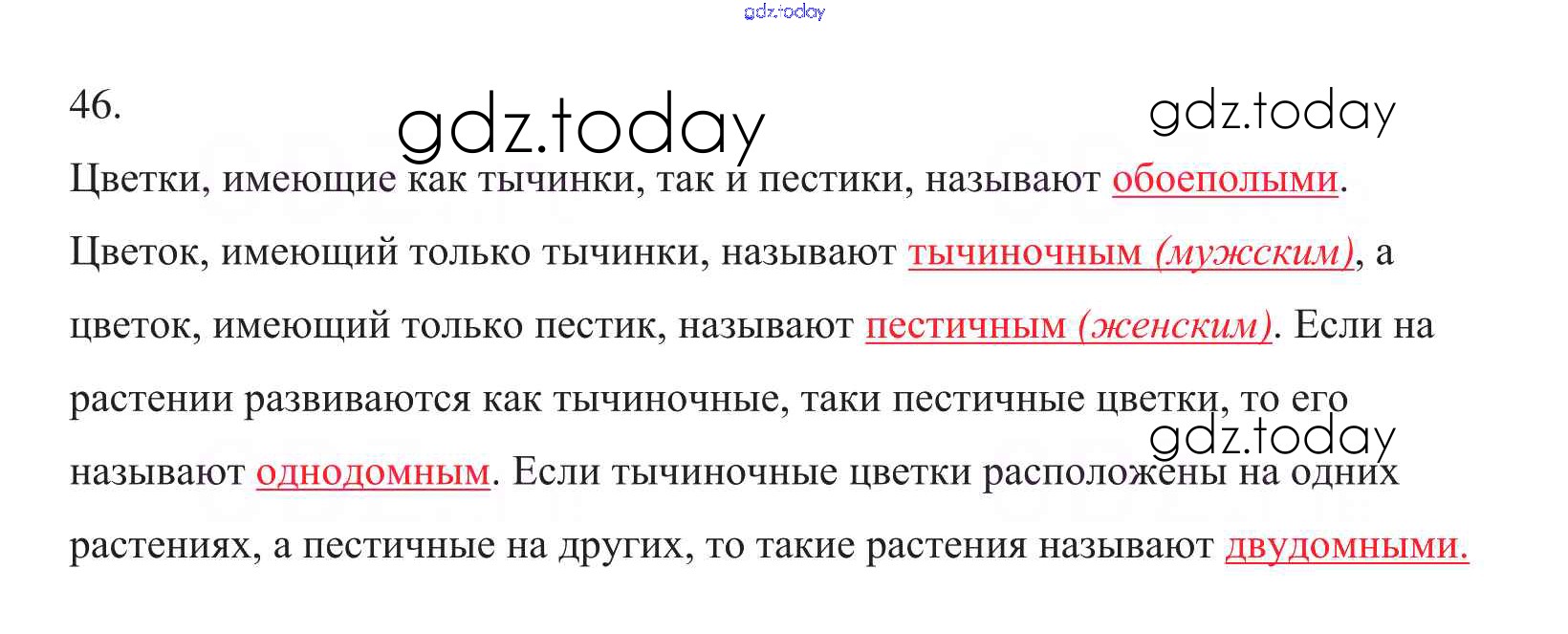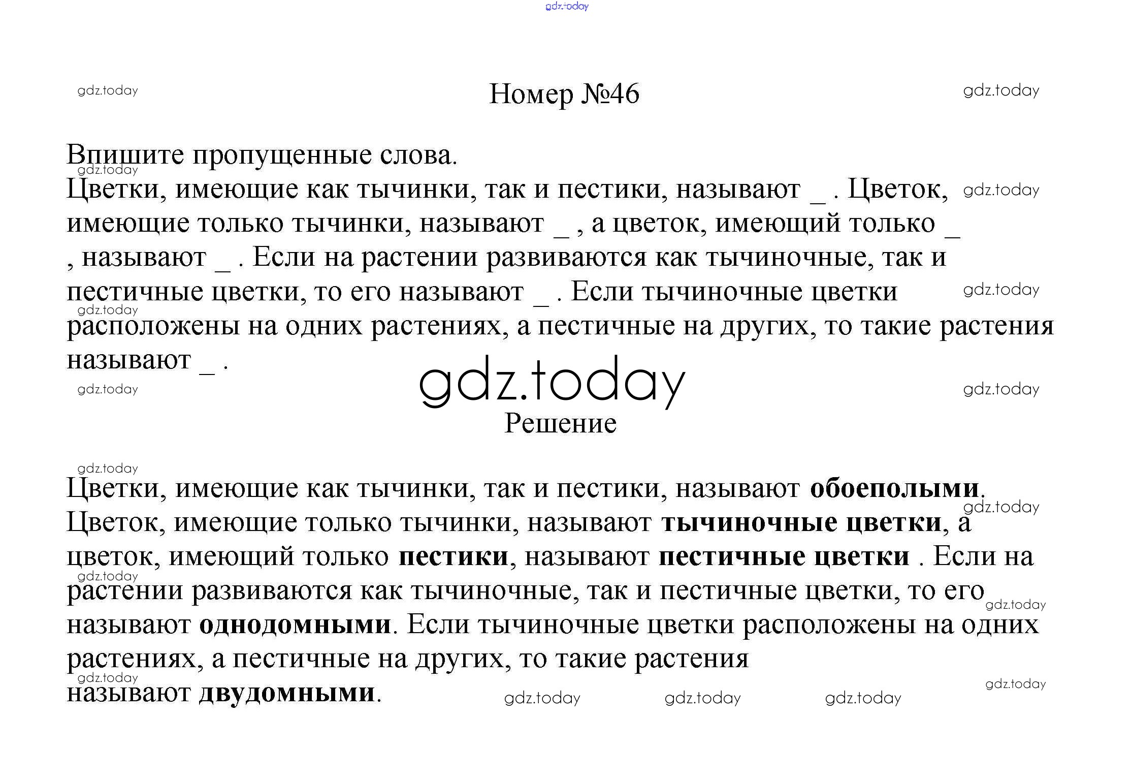 На страницах сайта gdz.today вы найдете учебный и вспомогательный материал, направленный на улучшения знаний школьной программы. ГДЗ - онлайн мир знаний Упражнения (решение) 46 Рабочей тетради по Биологии для 6 класса Пасечник Дрофа УМК 2017
