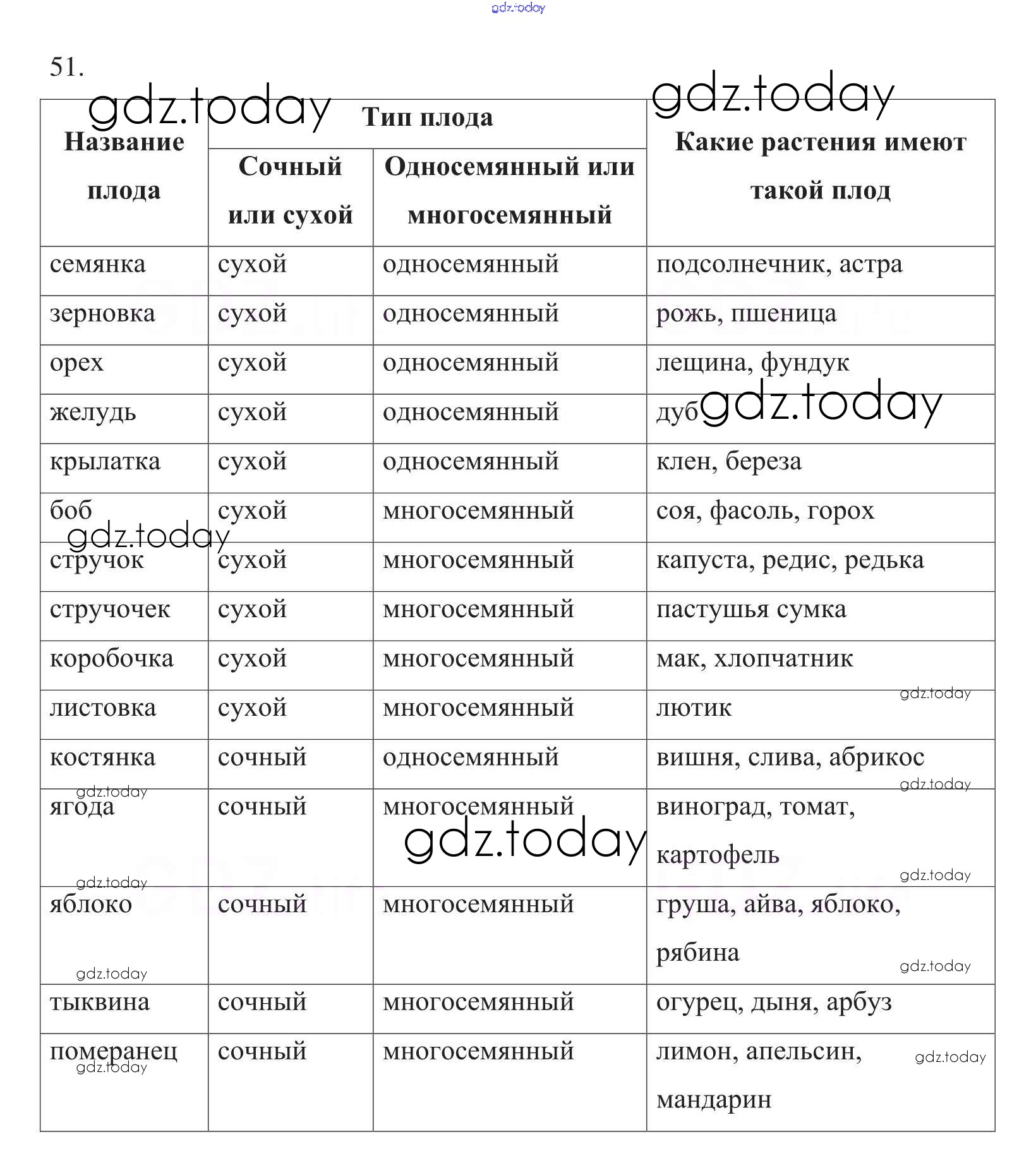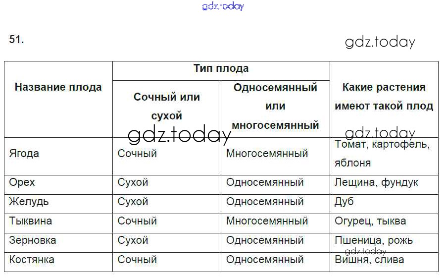 На страницах сайта gdz.today вы найдете учебный и вспомогательный материал, направленный на улучшения знаний школьной программы. ГДЗ - онлайн мир знаний Упражнения (решение) 51 Рабочей тетради по Биологии для 6 класса Пасечник Дрофа УМК 2017