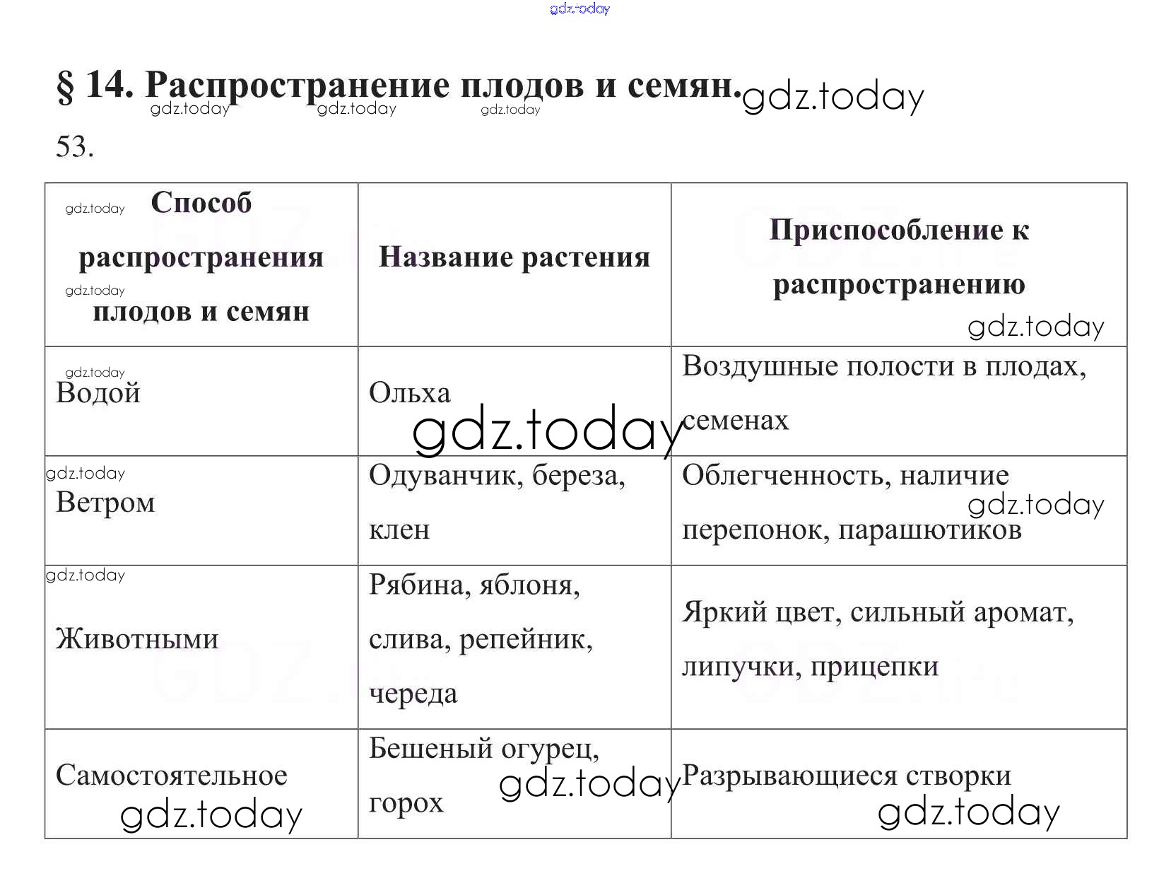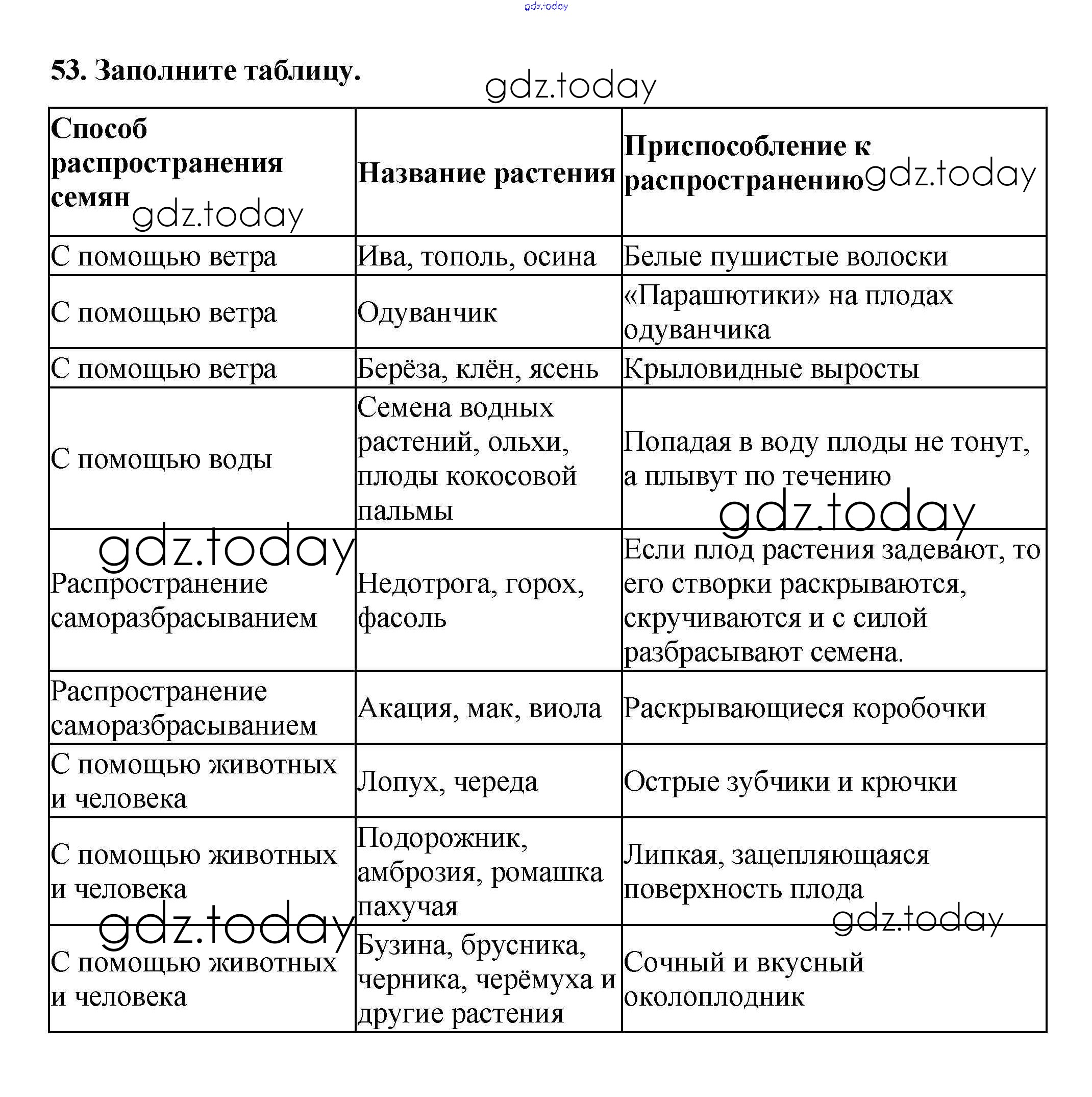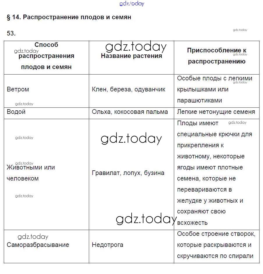 На страницах сайта gdz.today вы найдете учебный и вспомогательный материал, направленный на улучшения знаний школьной программы. ГДЗ - онлайн мир знаний Упражнения (решение) 53 Рабочей тетради по Биологии для 6 класса Пасечник Дрофа УМК 2017