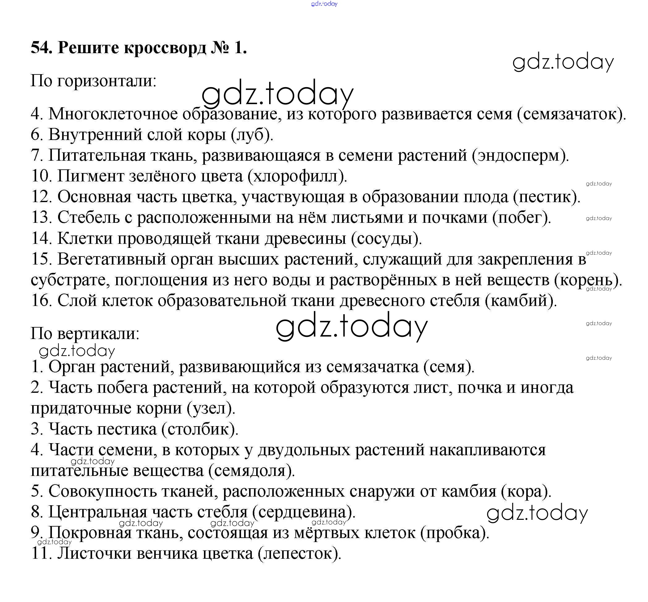 На страницах сайта gdz.today вы найдете учебный и вспомогательный материал, направленный на улучшения знаний школьной программы. ГДЗ - онлайн мир знаний Упражнения (решение) 54 Рабочей тетради по Биологии для 6 класса Пасечник Дрофа УМК 2017
