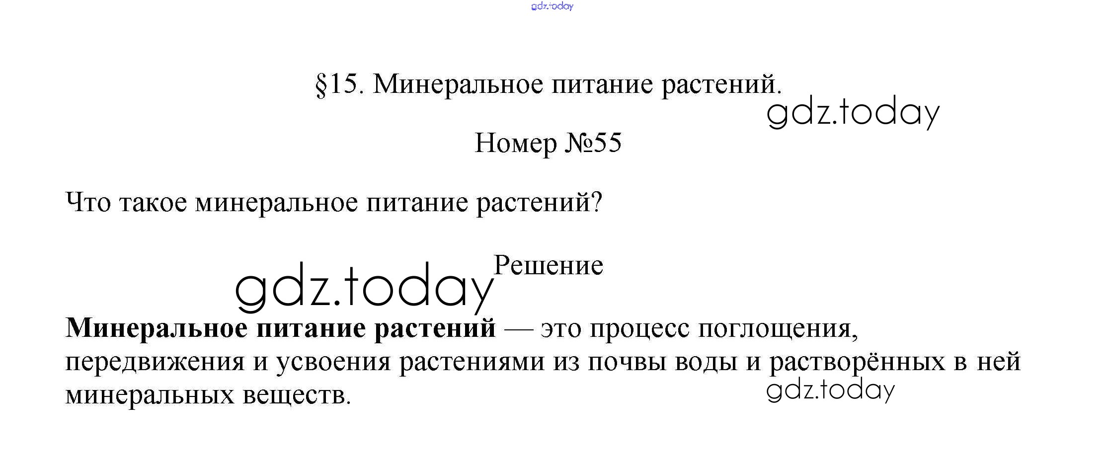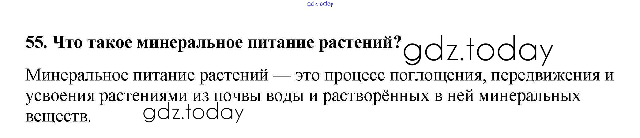 На страницах сайта gdz.today вы найдете учебный и вспомогательный материал, направленный на улучшения знаний школьной программы. ГДЗ - онлайн мир знаний Упражнения (решение) 55 Рабочей тетради по Биологии для 6 класса Пасечник Дрофа УМК 2017