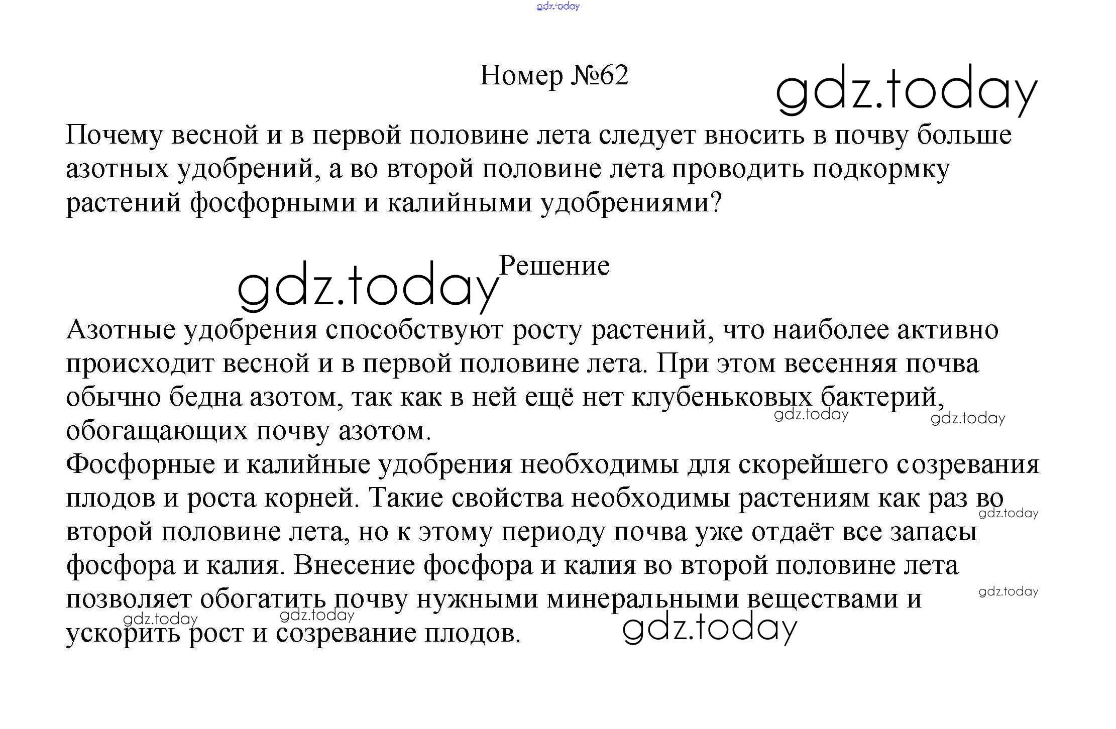 На страницах сайта gdz.today вы найдете учебный и вспомогательный материал, направленный на улучшения знаний школьной программы. ГДЗ - онлайн мир знаний Упражнения (решение) 62 Рабочей тетради по Биологии для 6 класса Пасечник Дрофа УМК 2017
