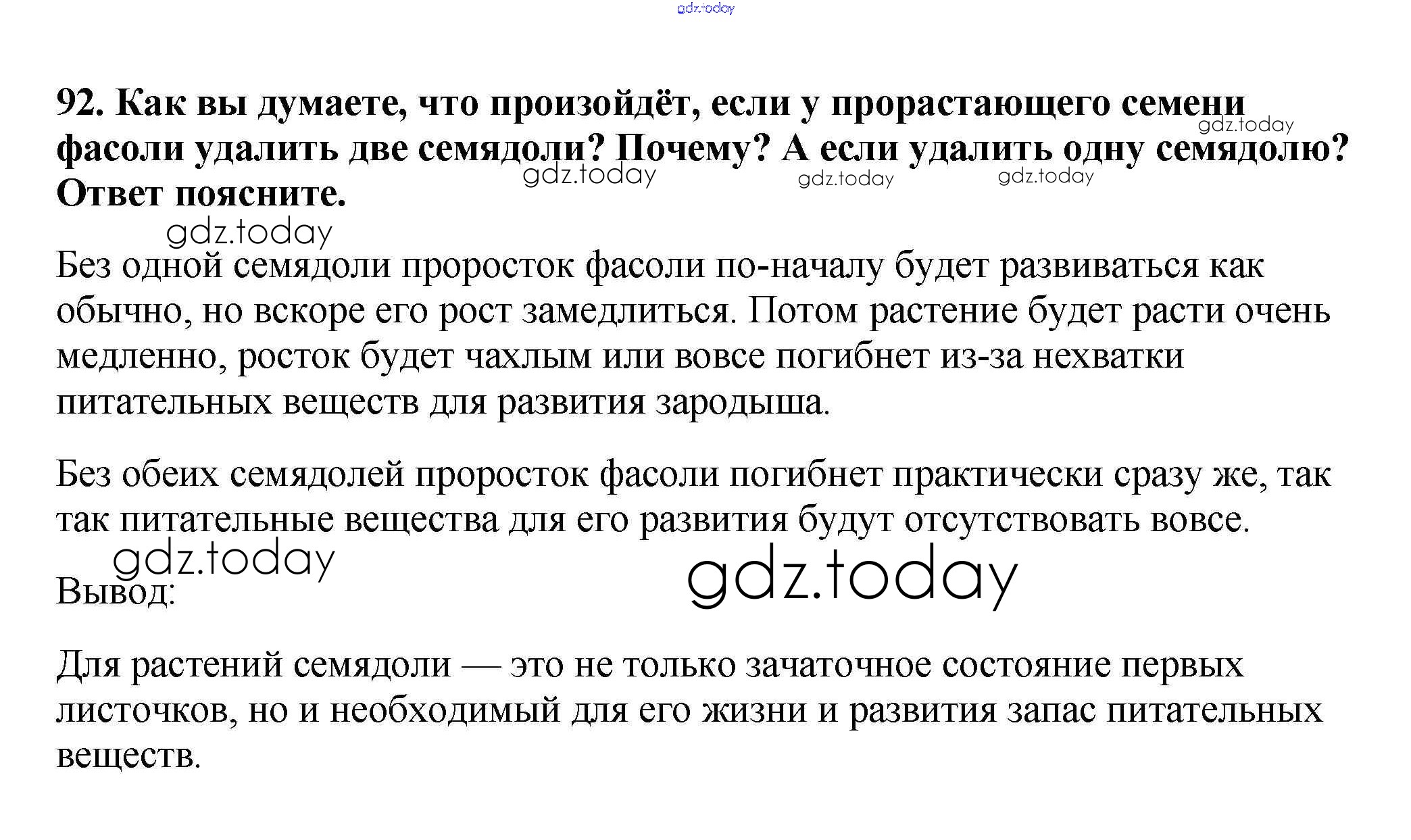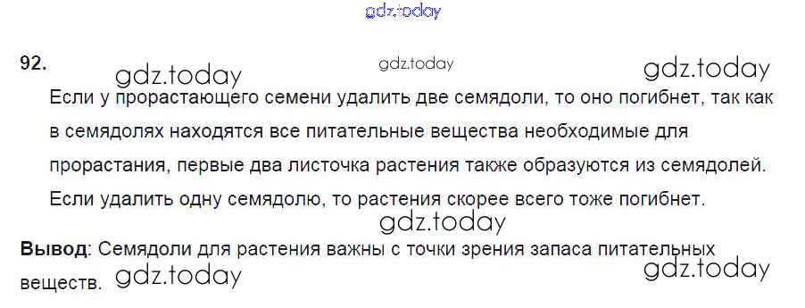 На страницах сайта gdz.today вы найдете учебный и вспомогательный материал, направленный на улучшения знаний школьной программы. ГДЗ - онлайн мир знаний Упражнения (решение) 92 Рабочей тетради по Биологии для 6 класса Пасечник Дрофа УМК 2017