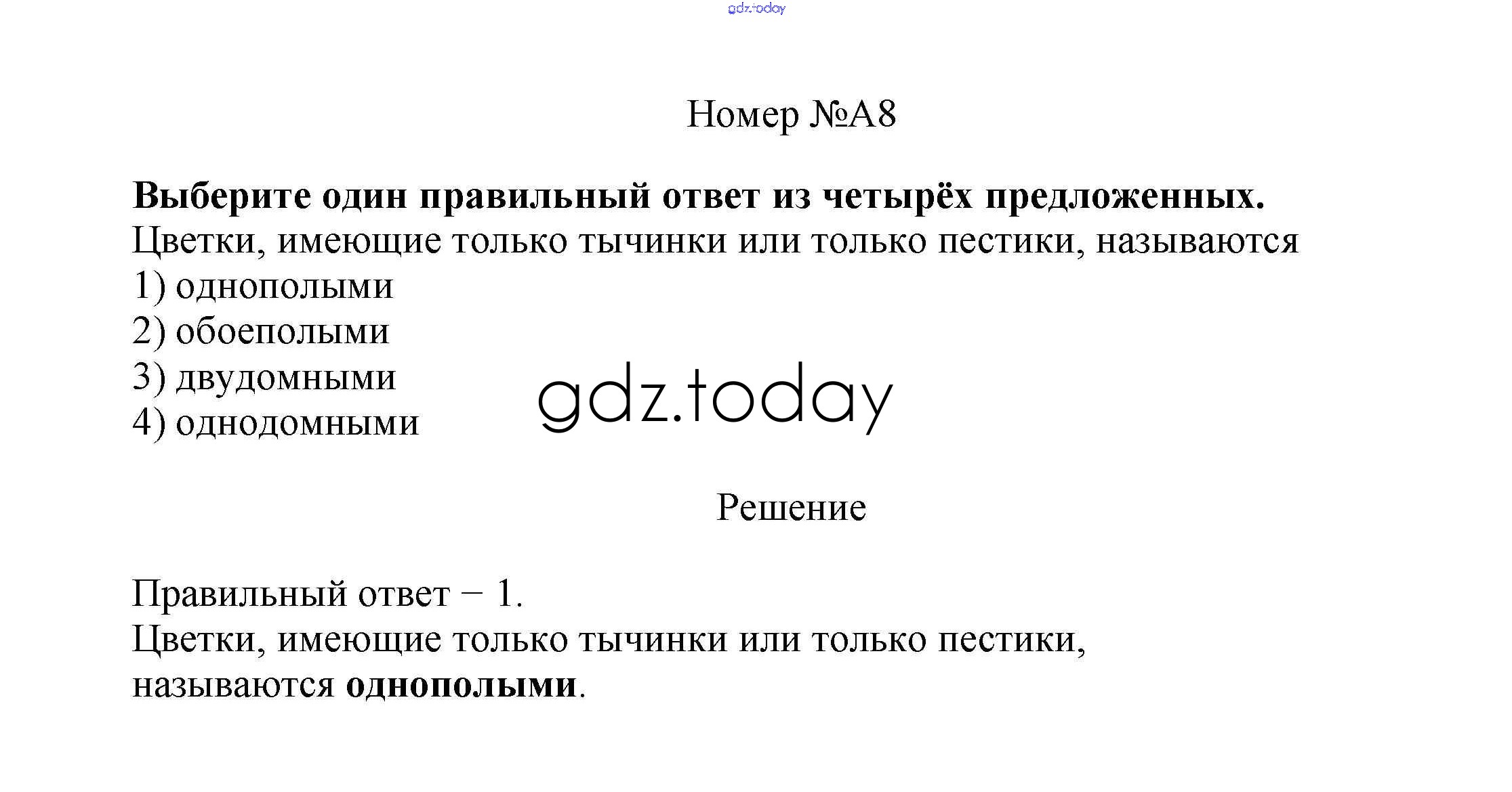 На страницах сайта gdz.today вы найдете учебный и вспомогательный материал, направленный на улучшения знаний школьной программы. ГДЗ - онлайн мир знаний Задания части A Строение и многообразие покрытосеменных растений 8 Рабочей тетради по Биологии для 6 класса Пасечник Дрофа УМК 2017