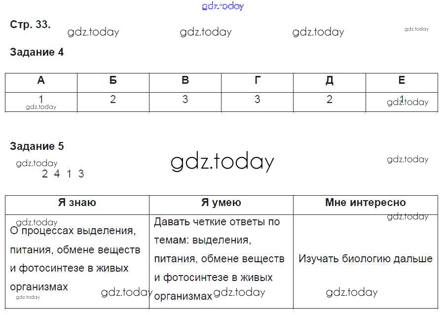 На страницах сайта gdz.today вы найдете учебный и вспомогательный материал, направленный на улучшения знаний школьной программы. ГДЗ - онлайн мир знаний Страницы (решение) 33 Рабочей тетради по Биологии для 6 класса Пасечник, Суматохин Просвещение Линия жизни 2018