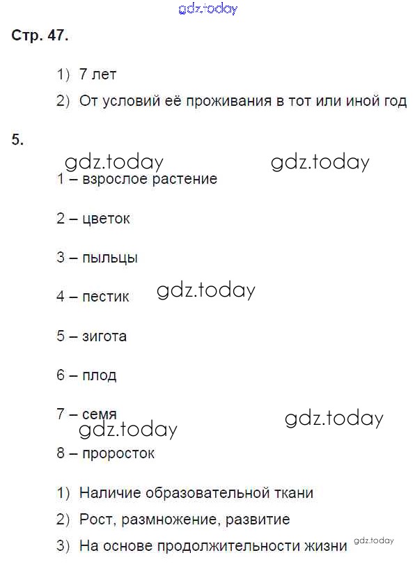 На страницах сайта gdz.today вы найдете учебный и вспомогательный материал, направленный на улучшения знаний школьной программы. ГДЗ - онлайн мир знаний Страницы (решение) 47 Рабочей тетради по Биологии для 6 класса Пасечник, Суматохин Просвещение Линия жизни 2018