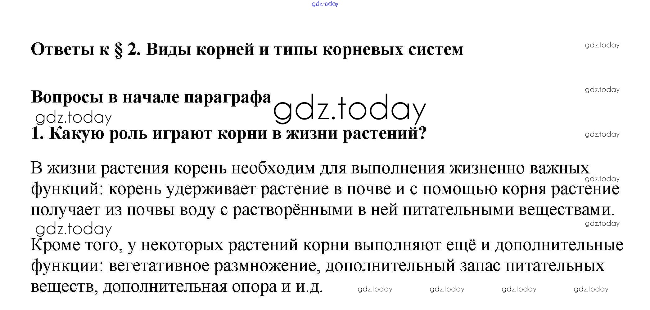 На страницах сайта gdz.today вы найдете учебный и вспомогательный материал, направленный на улучшения знаний школьной программы. ГДЗ - онлайн мир знаний Вопросы в начале параграфа Решение к §2. Виды корней и типы корневых систем 1 Учебнику по Биологии для 6 класса Пасечник Дрофа Вертикаль 2014